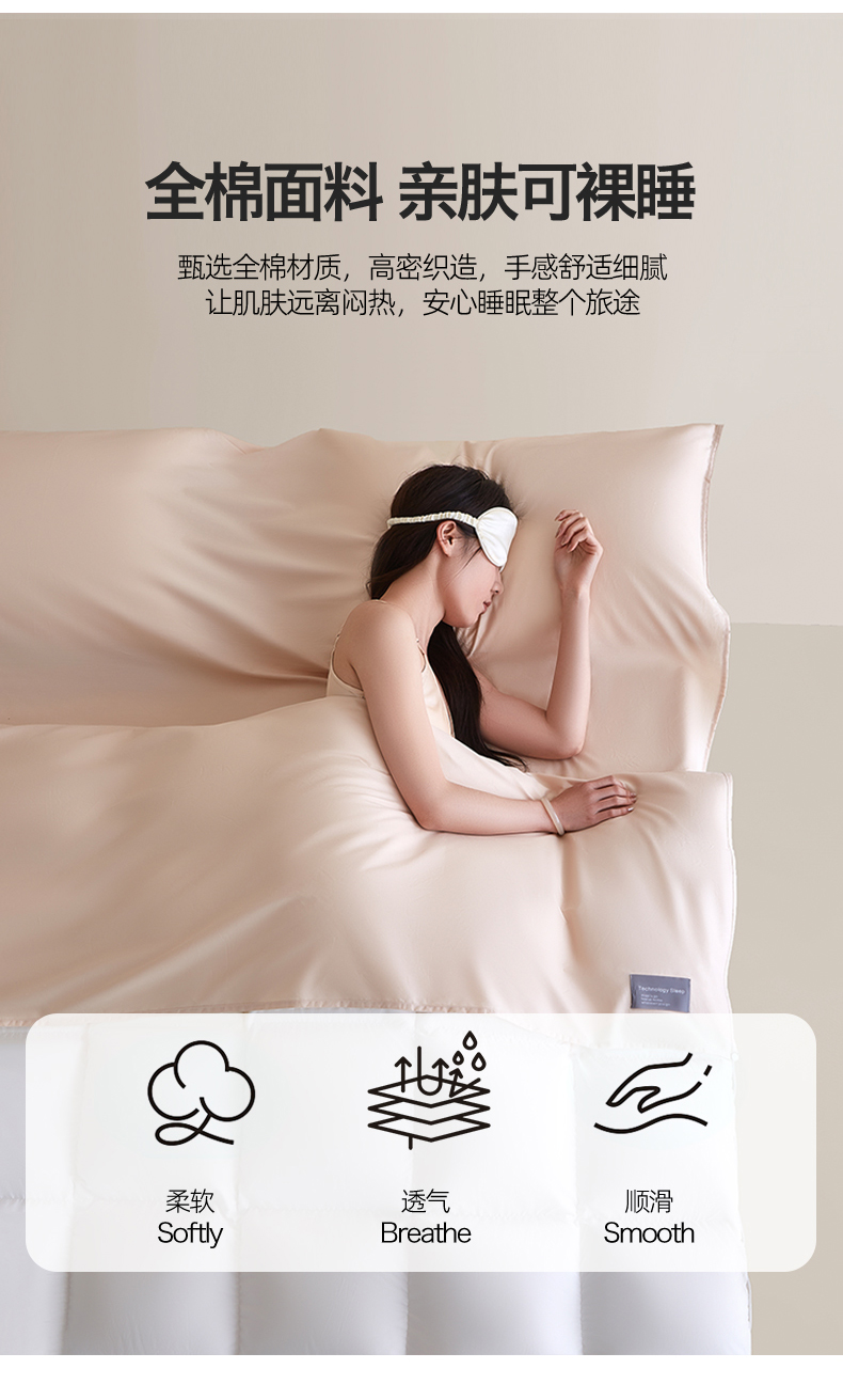 商品名称:女子家纺 2026新款全棉纯棉旅行随身携带睡袋 隔脏旅睡-浅茶杏
