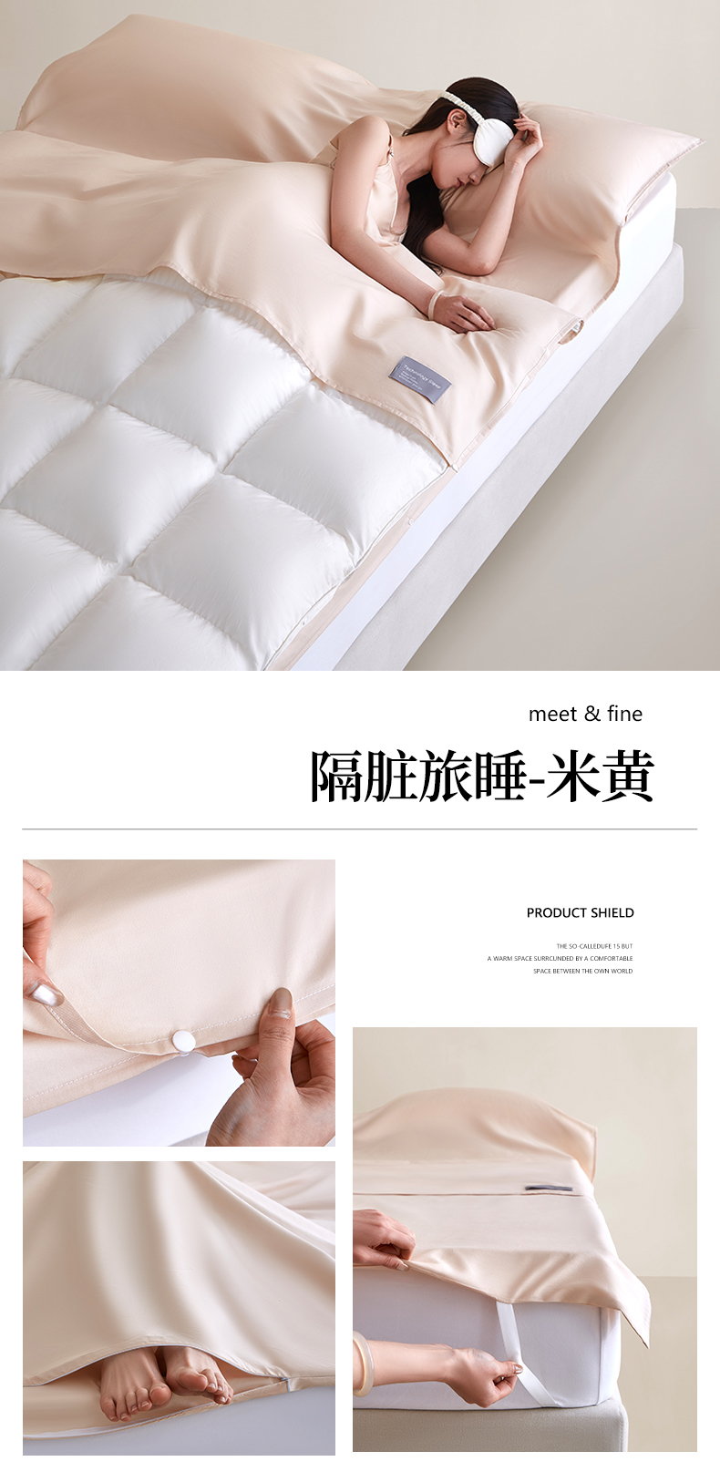 女子家纺 2026新款全棉纯棉旅行随身携带睡袋 隔脏旅睡-浅茶杏