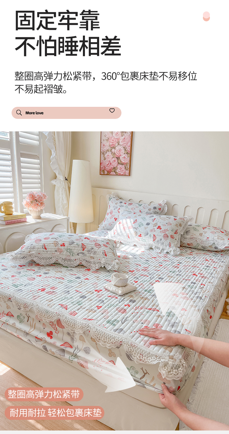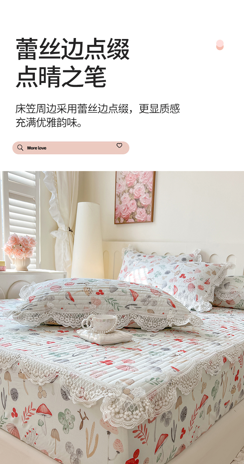 (总)网红馆(ck家纺) 2026新款全棉蕾丝花边床裙款床笠晨暮花间系列,绯红,粉色,麦绿,米色,浅紫,雾蓝