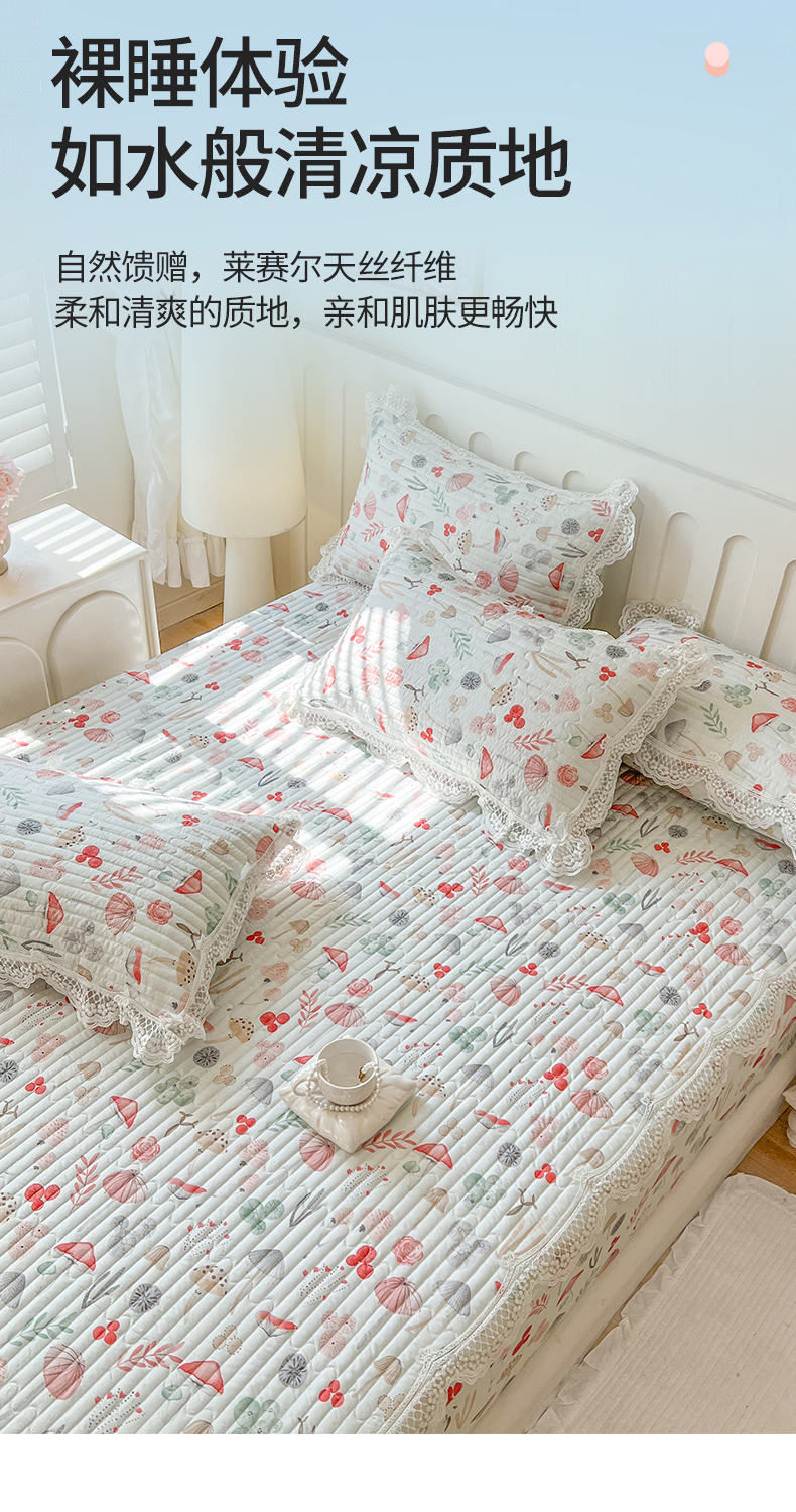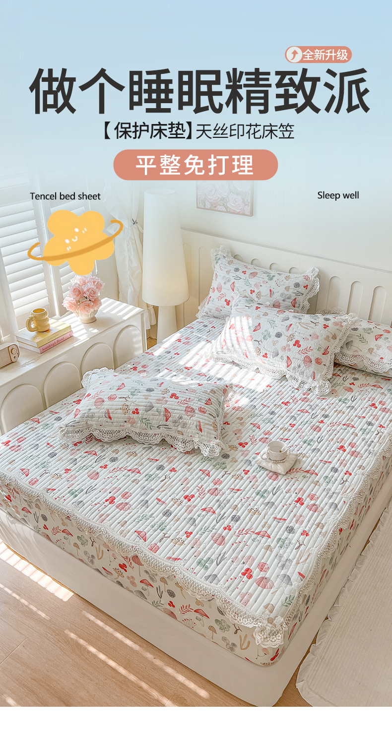 网红馆(ck家纺) 2026新款莱赛尔天丝印花床笠 蘑菇森林