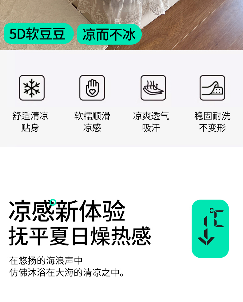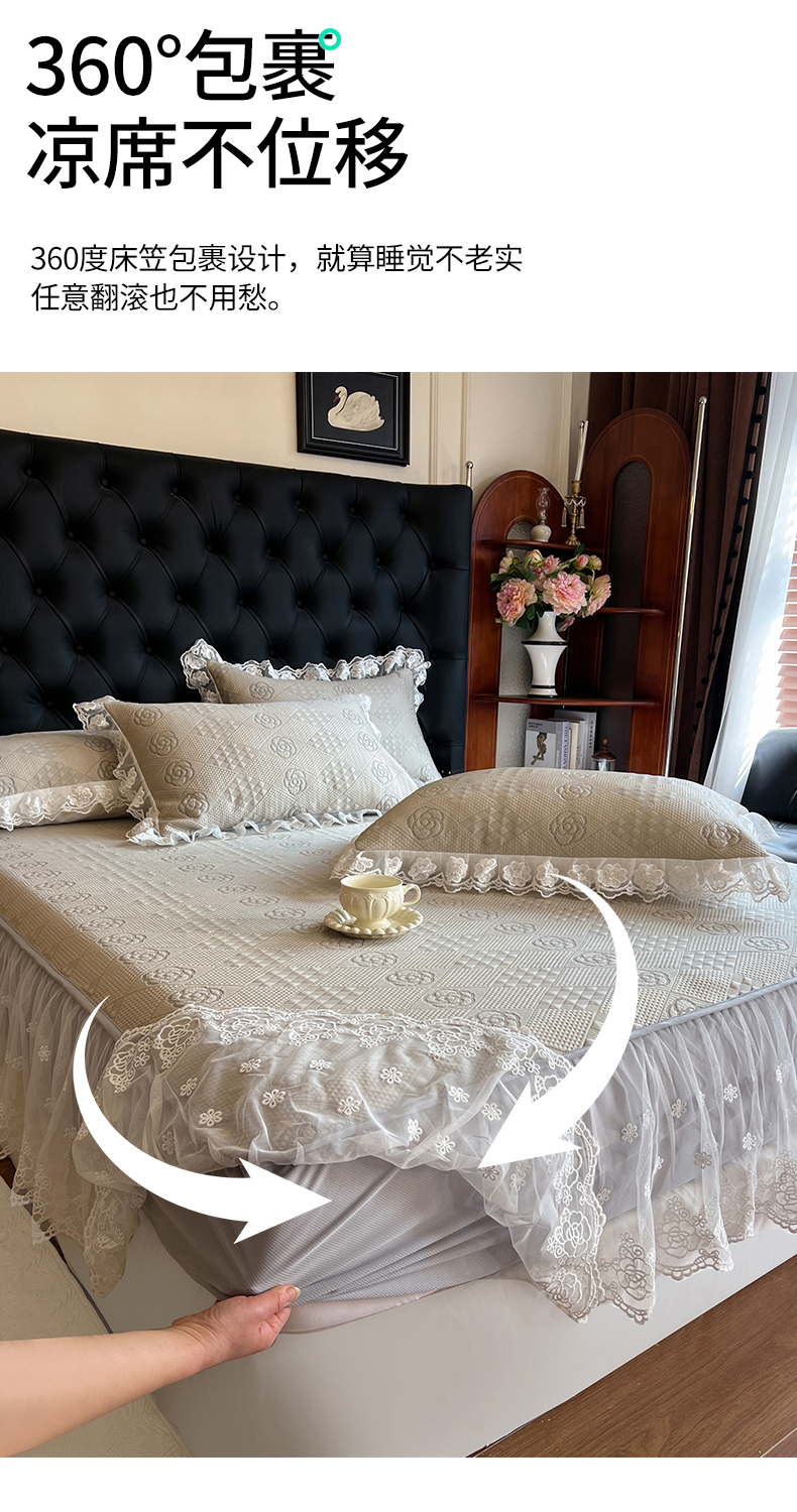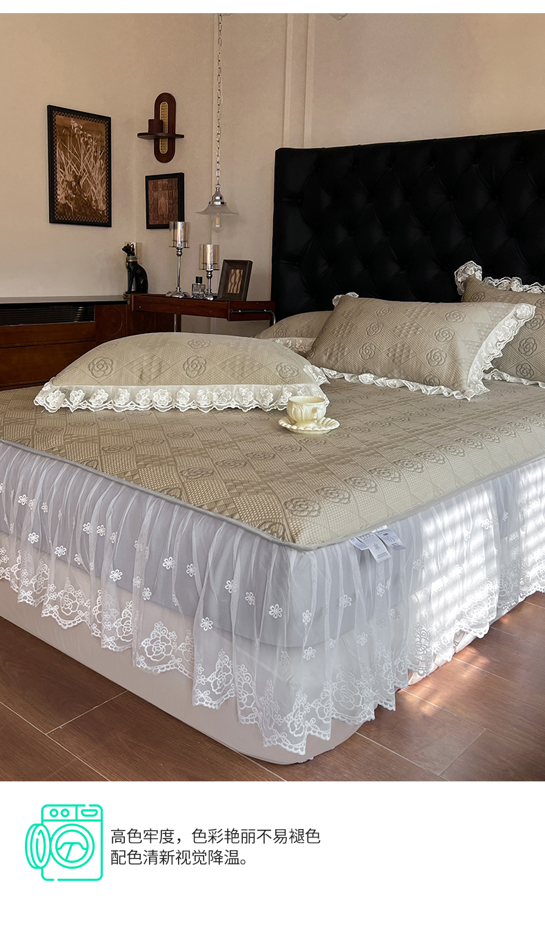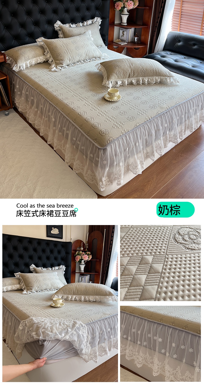 商品名称:网红馆(ck家纺) 2026新款床笠式床裙豆豆冰凉席-瑞莎 奶棕