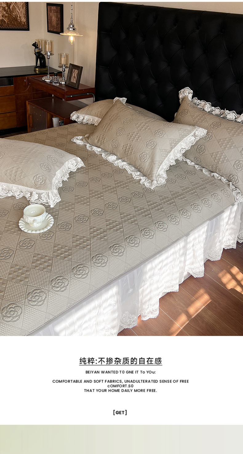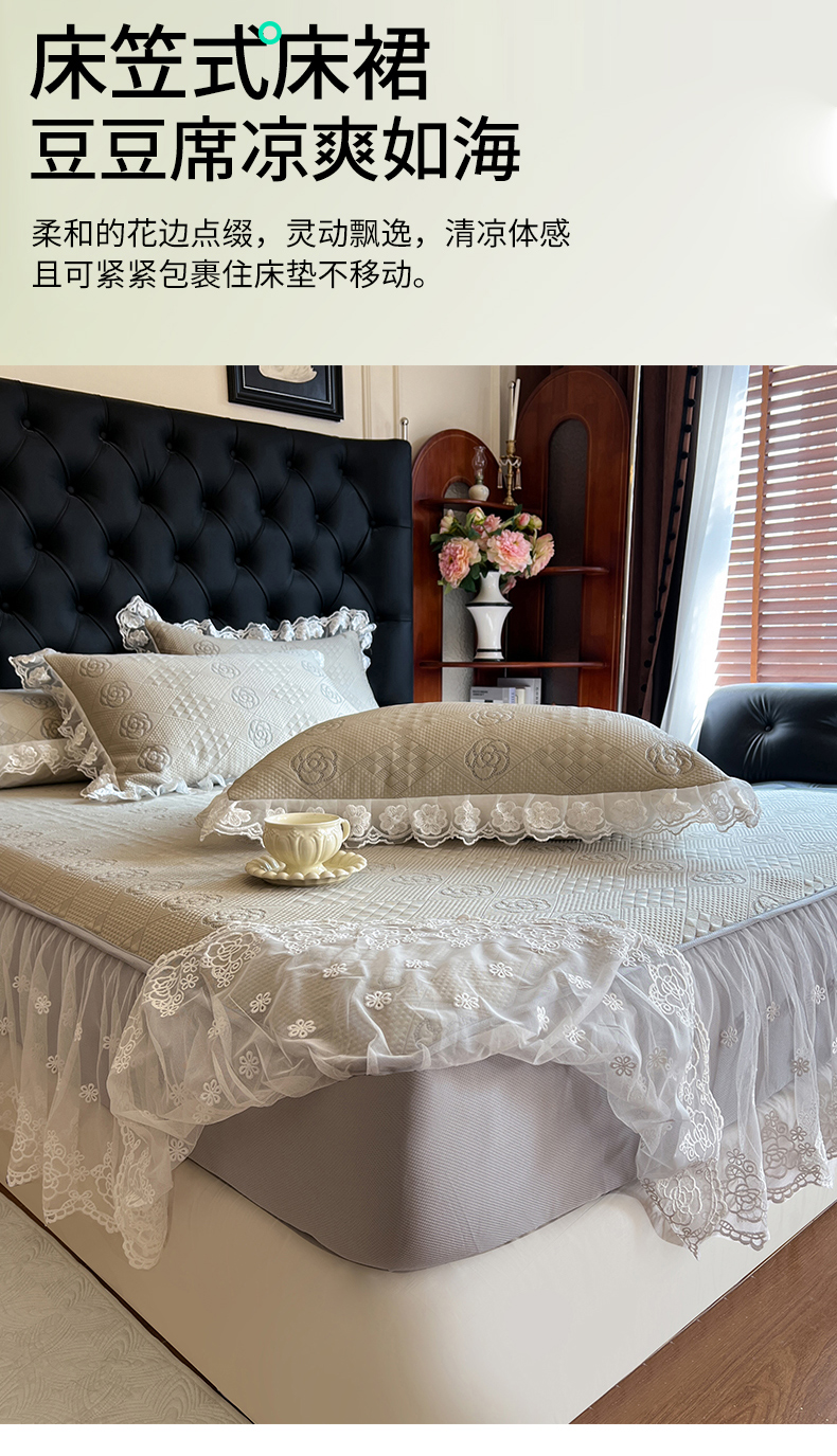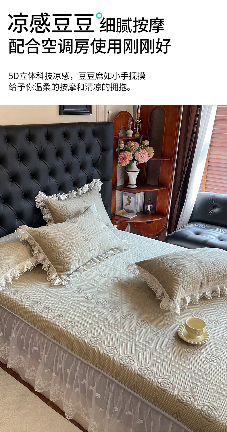 网红馆(ck家纺) 2026新款床笠式床裙豆豆冰凉席-瑞莎 奶棕