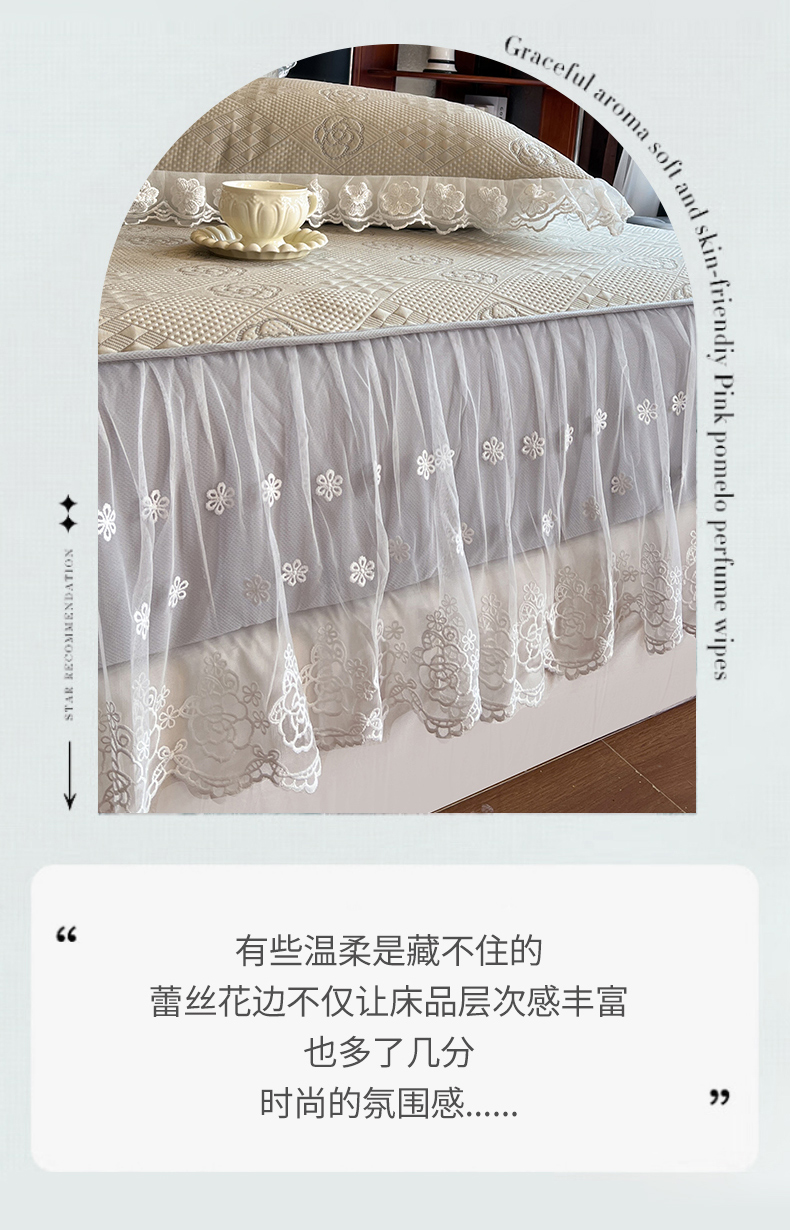 (总)网红馆(ck家纺) 2026新款全棉蕾丝花边床裙款床笠晨暮花间系列,绯红,粉色,麦绿,米色,浅紫,雾蓝
