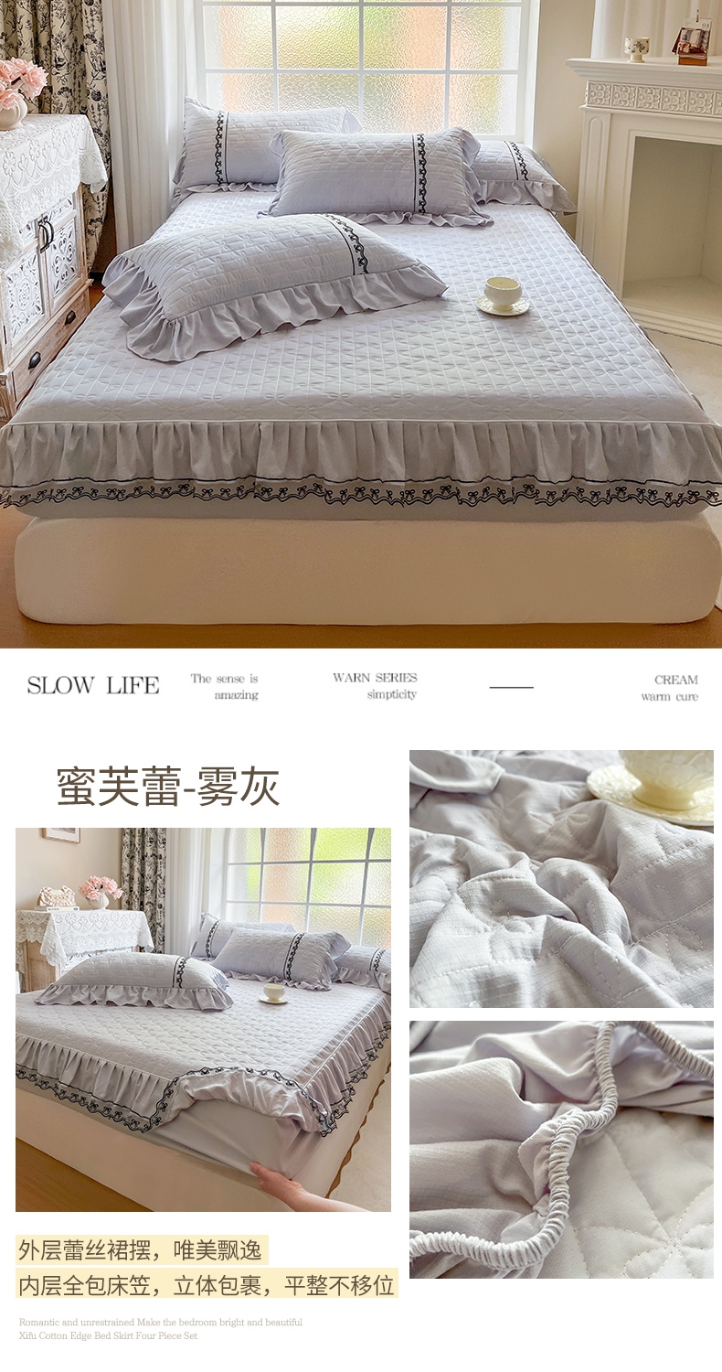 • 91家纺网 家纺一手货源 找家纺 (总)网红馆(ck家纺) 2026新款色织蕾丝边床裙款床笠,宝石蓝,黛绿色,浪漫紫,奶茶色,石青,香妃粉,烟熏灰