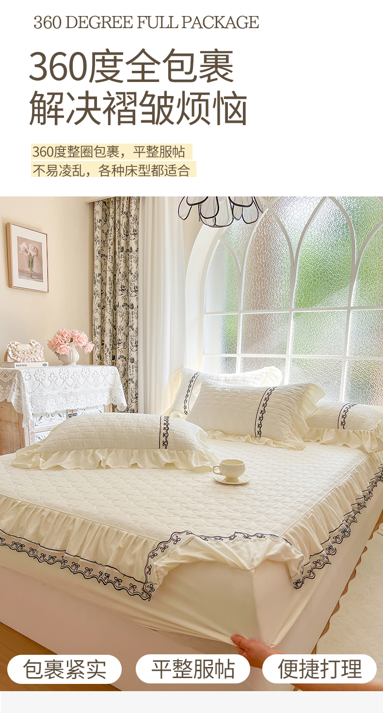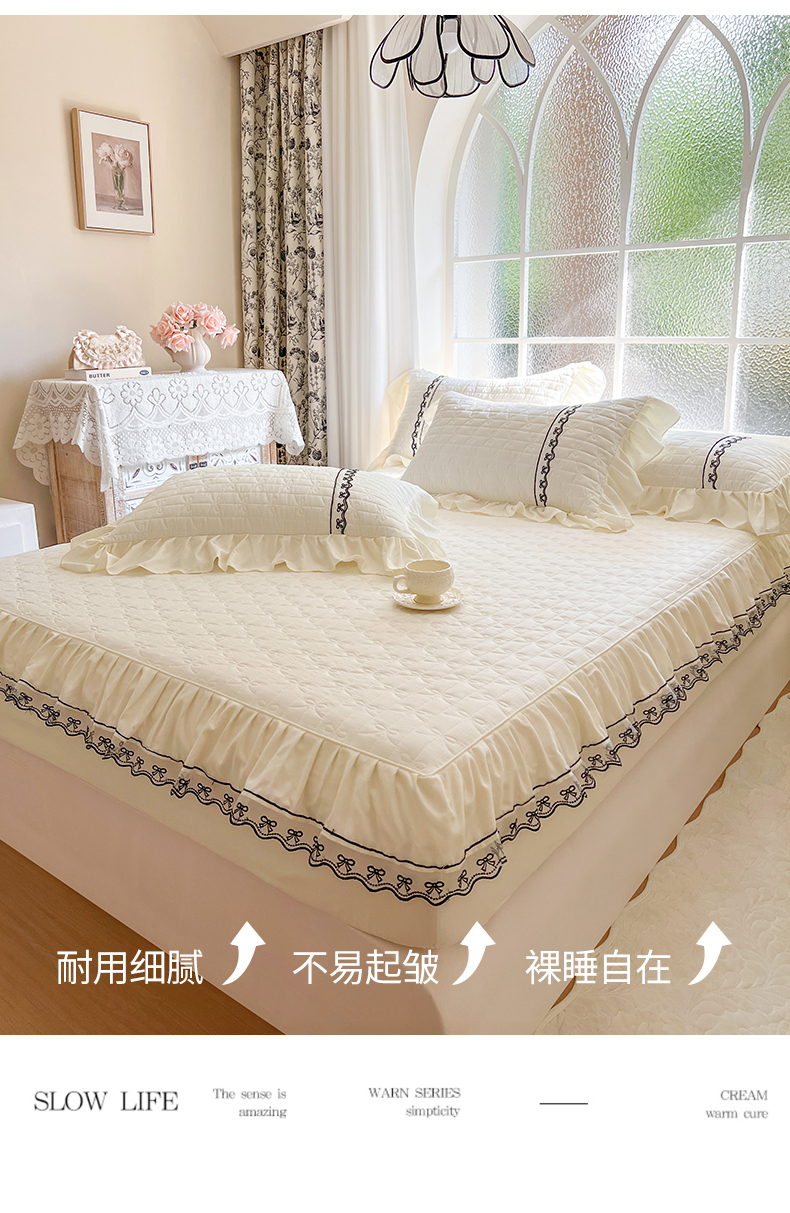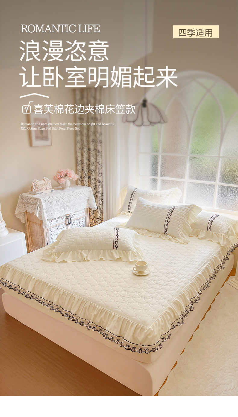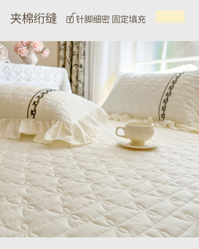 • 91家纺网 家纺一手货源 找家纺 网红馆(ck家纺) 2026新款喜芙棉蕾丝夹棉蜜芙蕾床笠 奶油白