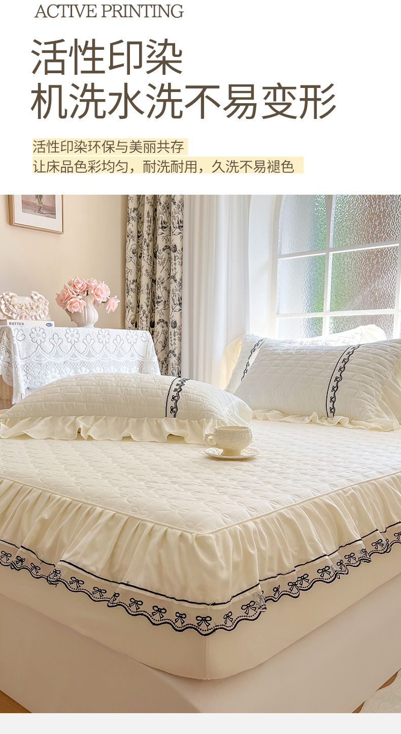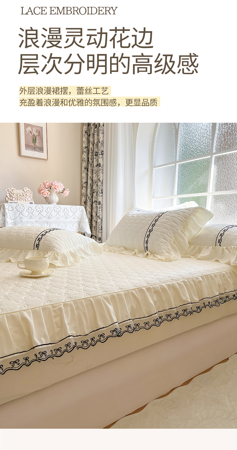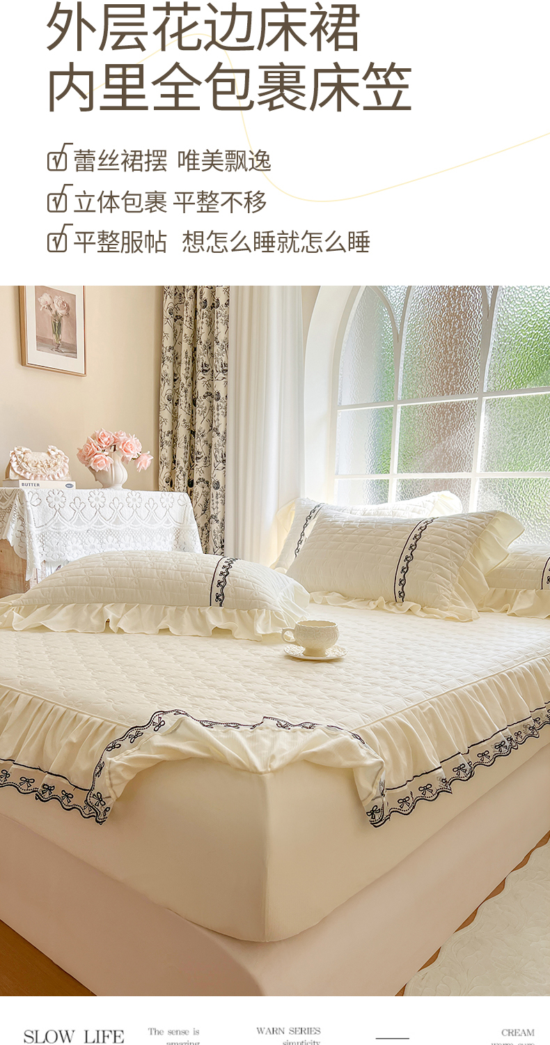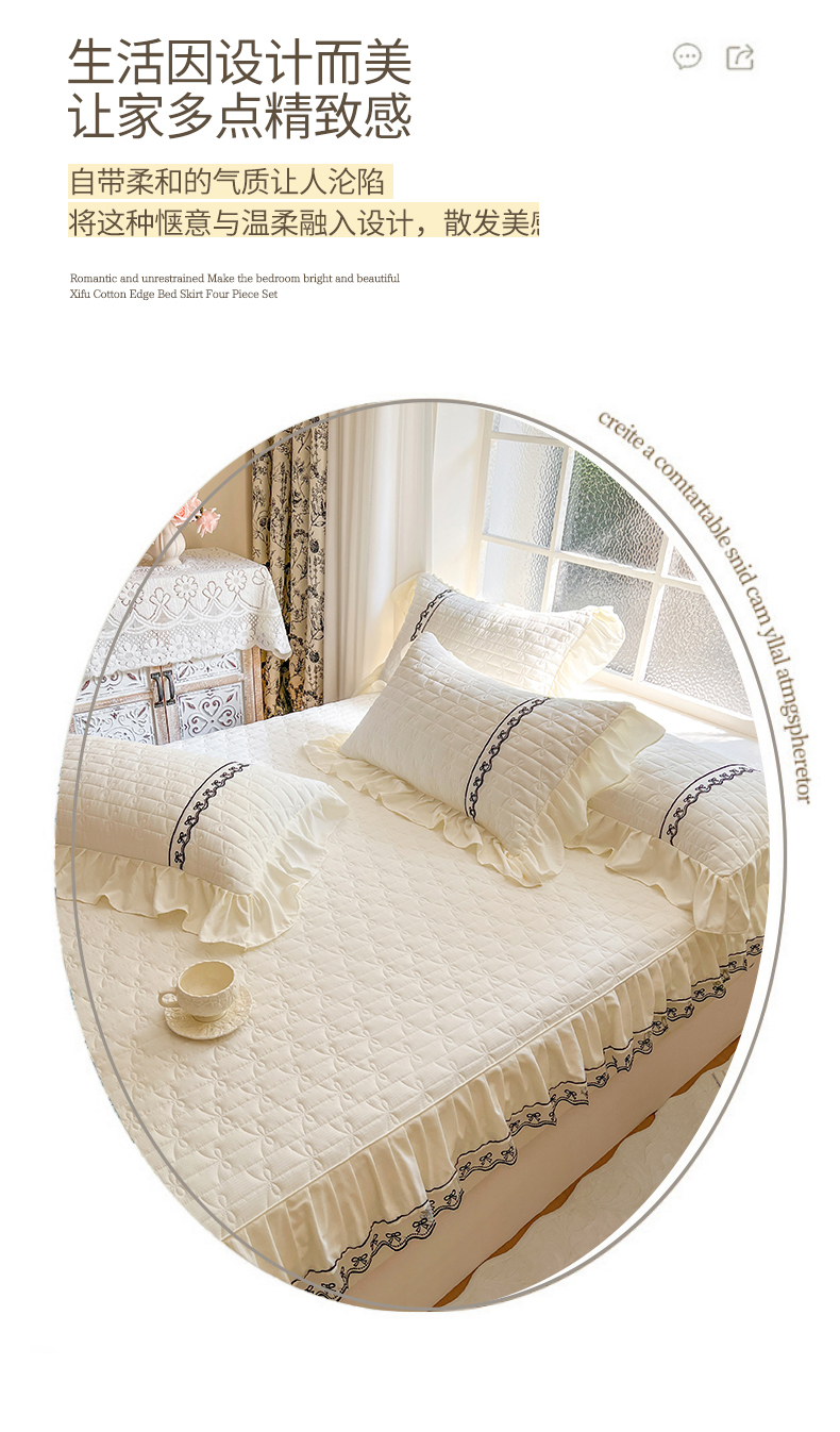 • 91家纺网 家纺一手货源 找家纺 网红馆(ck家纺) 2026新款喜芙棉蕾丝夹棉蜜芙蕾床笠 奶油白