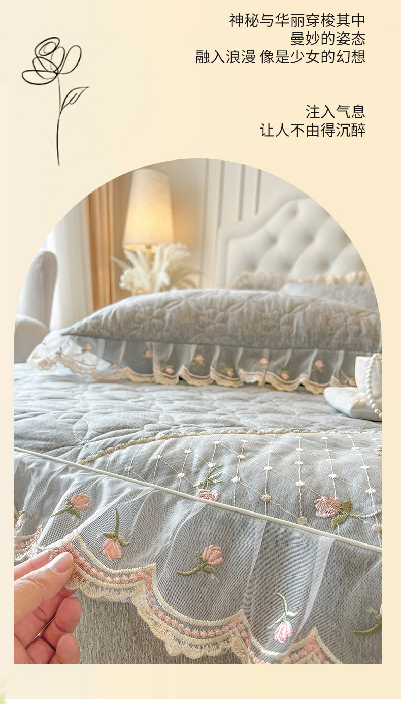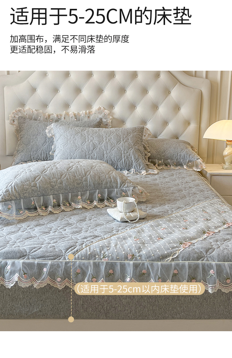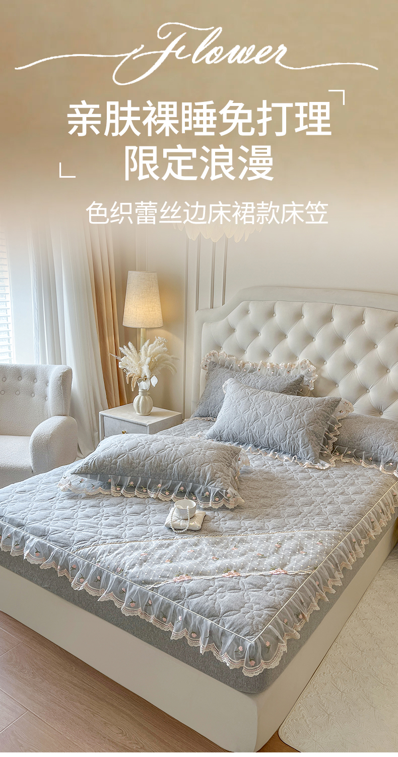 网红馆(ck家纺) 2026新款色织蕾丝边床裙款床笠 烟熏灰