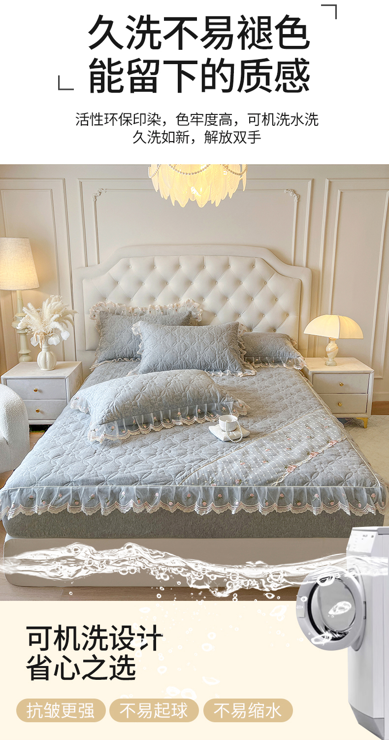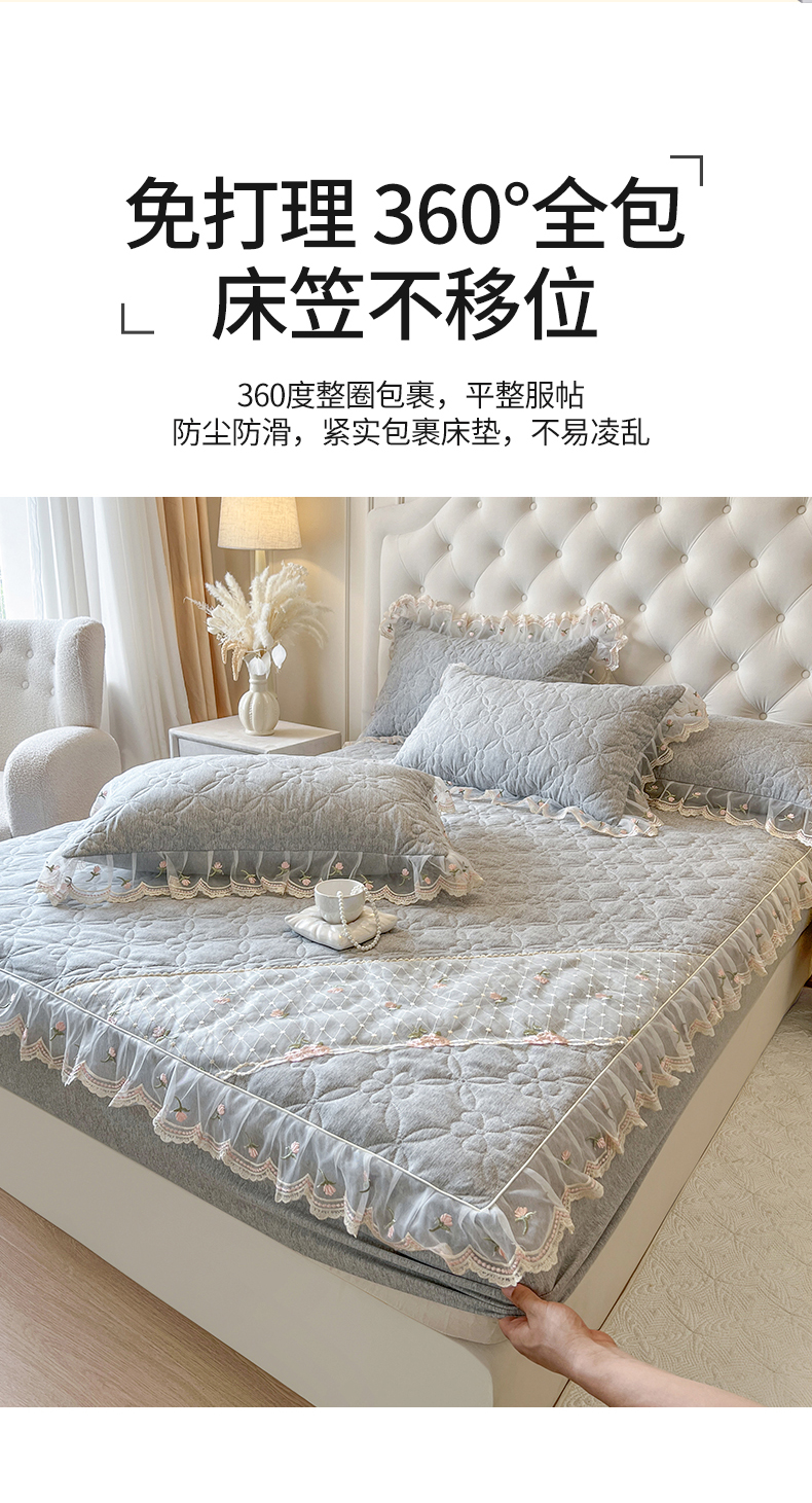 当前位置: 91家纺网 > 商品网购 > 床上用品 > 床笠 > 网红馆(ck家纺) 2026新款色织蕾丝边床裙款床笠 烟熏灰