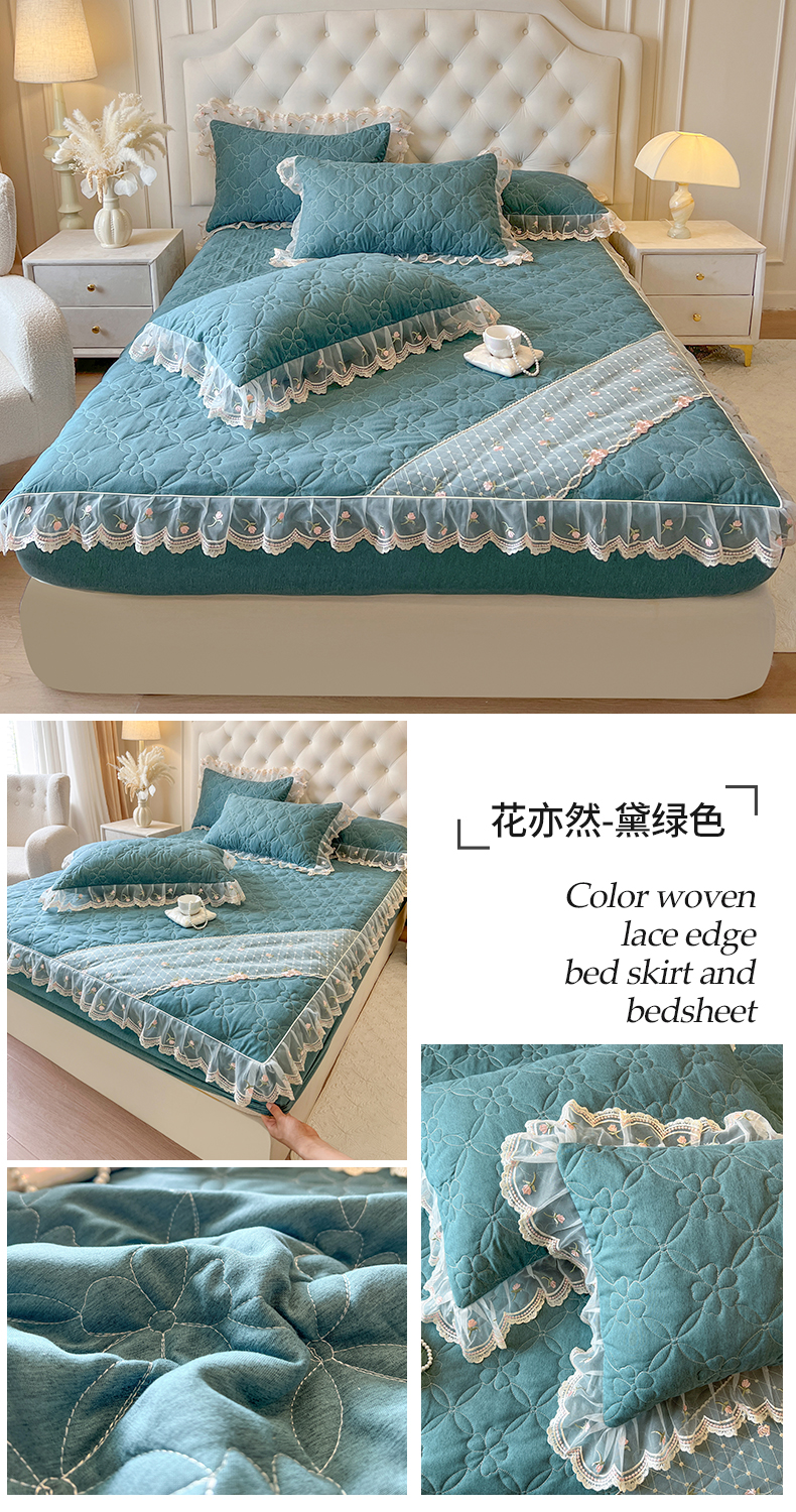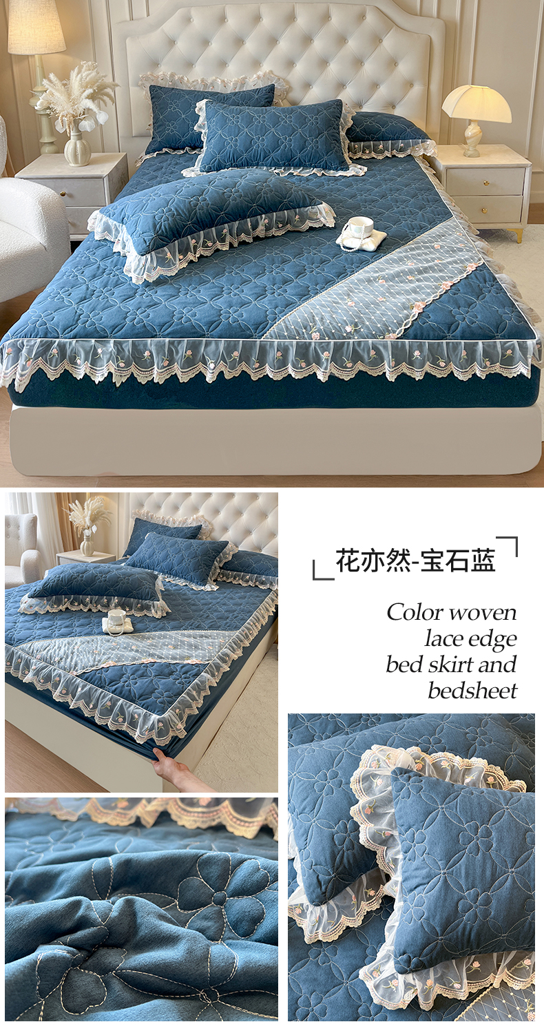 • 91家纺网 家纺一手货源 找家纺 (总)网红馆(ck家纺) 2026新款色织蕾丝边床裙款床笠,宝石蓝,黛绿色,浪漫紫,奶茶色,石青,香妃粉,烟熏灰