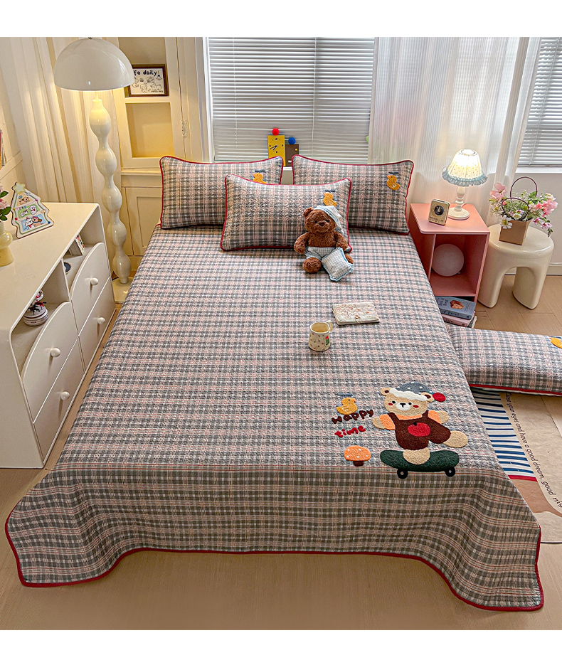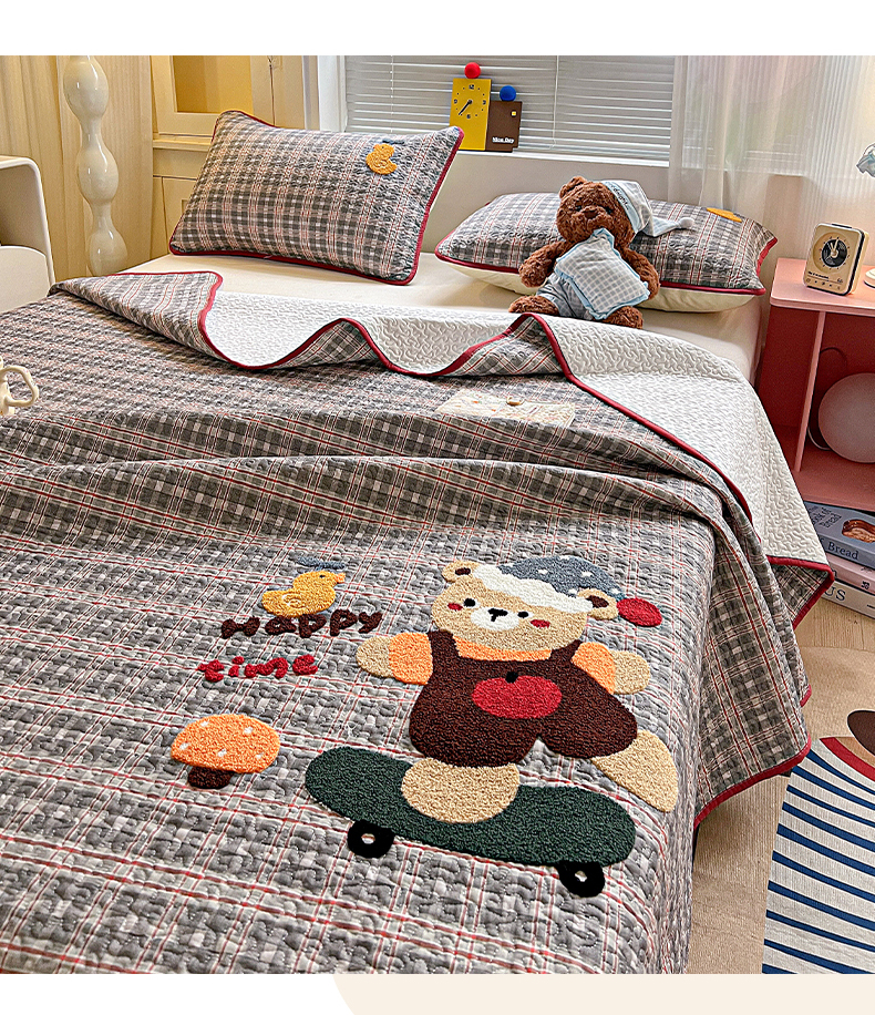 (总)鑫喜莱家纺 2026新款全棉纯棉原创毛巾绣床盖三件套单床盖软床垫,滑板小熊仔,酷酷的小熊,面包小狗,南瓜小兔,胖熊的星星,苹果小狗,线团小黑猫,星星人,组合图仅供展示-不可下单