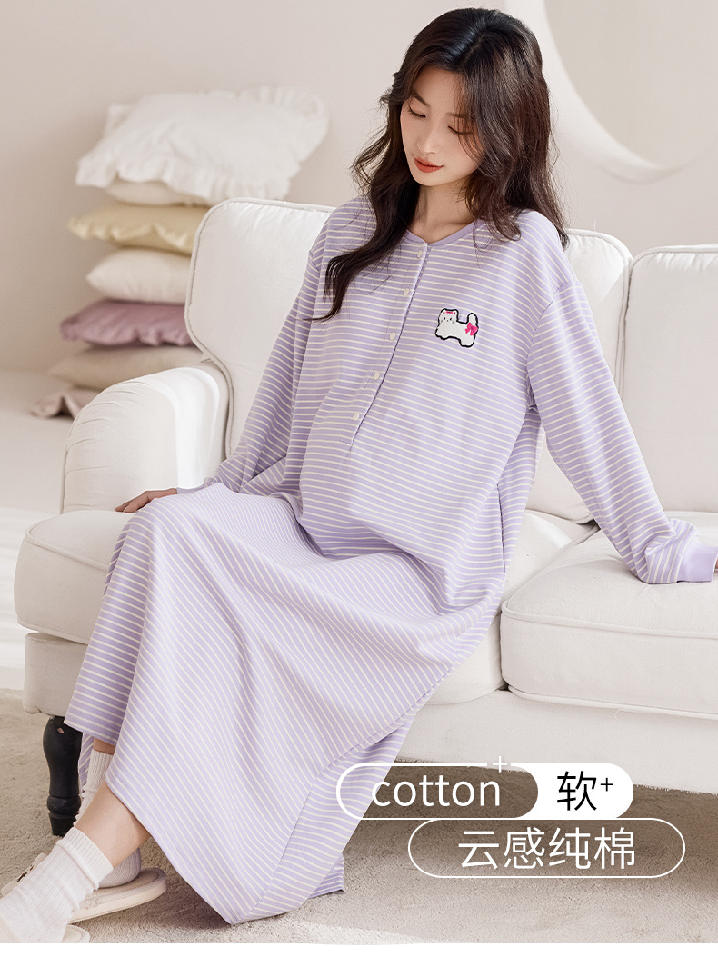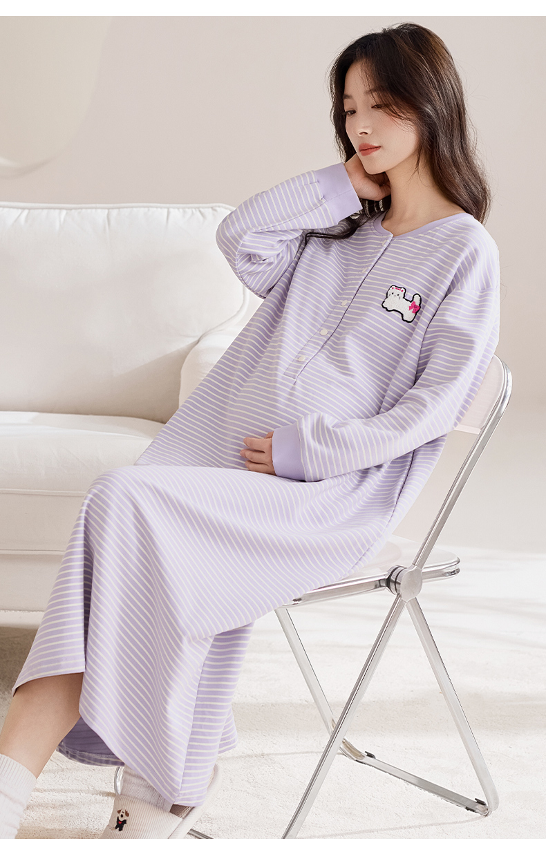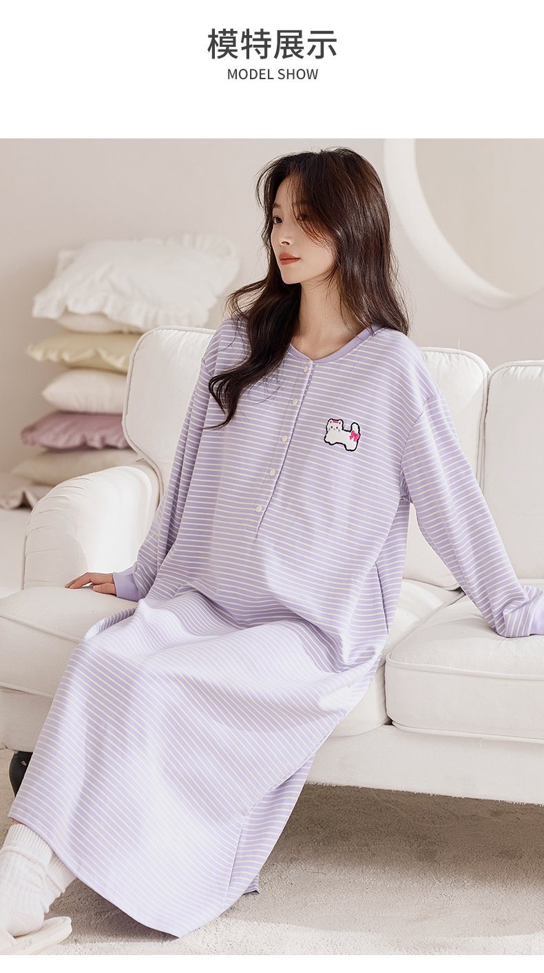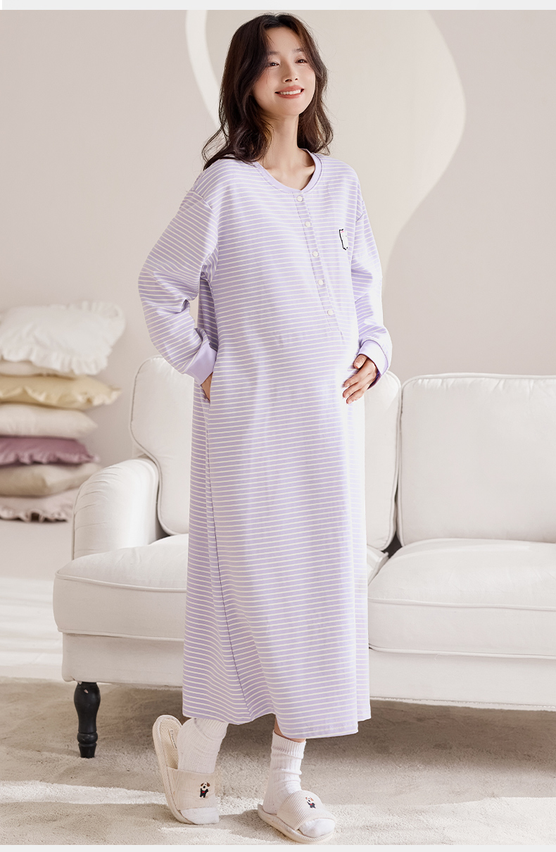 洛兰沙家居馆 2026新款长袖全棉纯棉孕妇睡裙女带胸垫产前产后哺乳喂奶月子服连衣裙 月子裙6