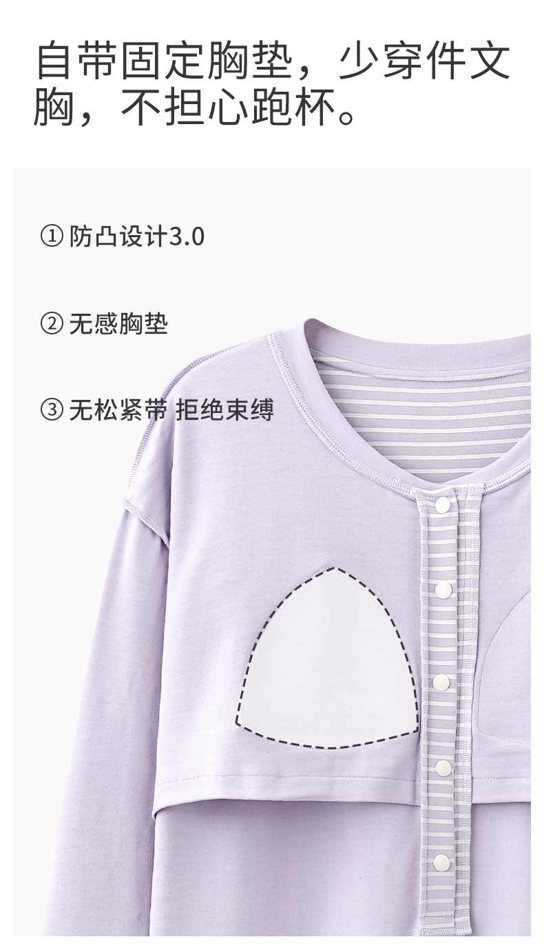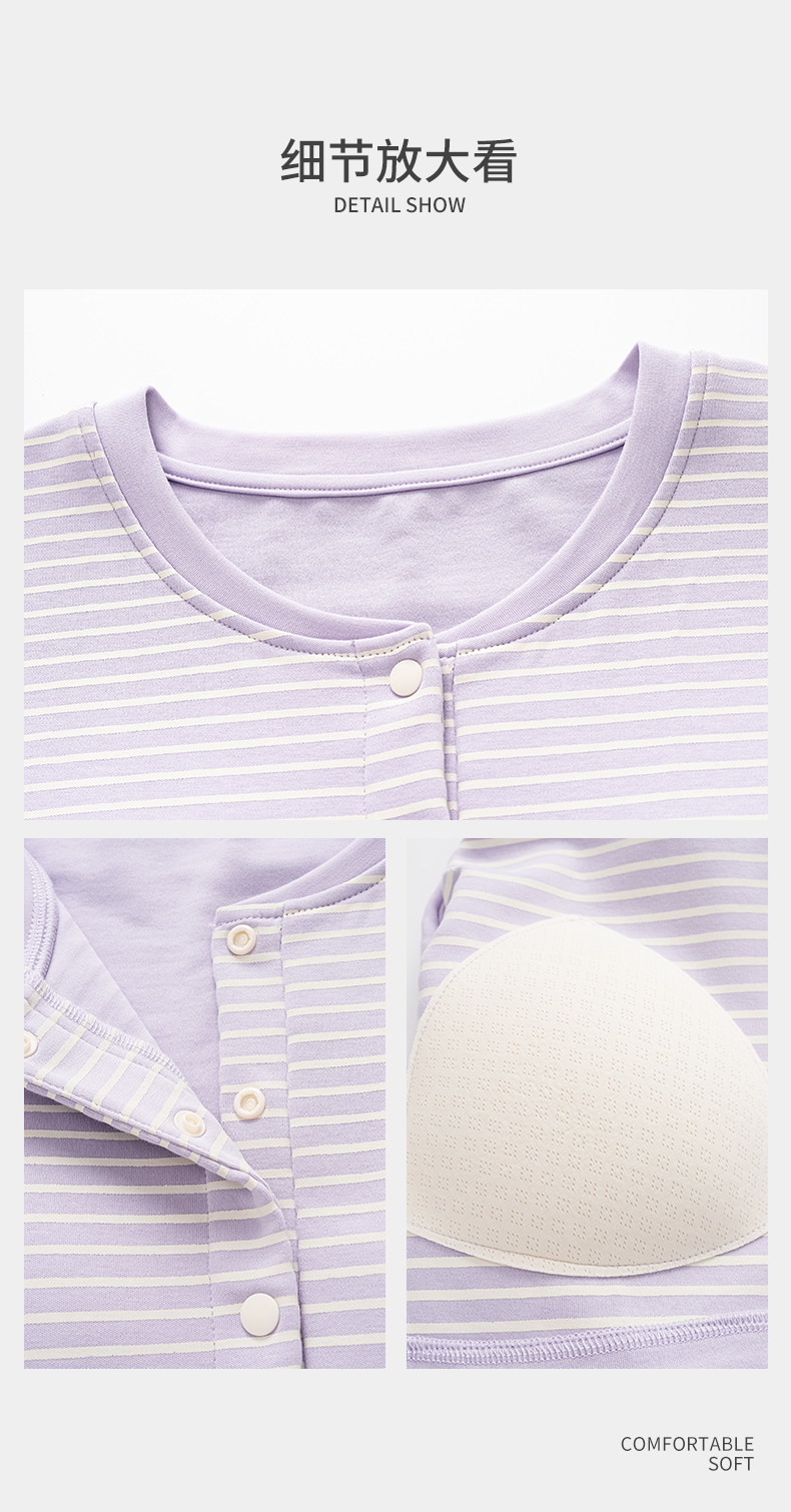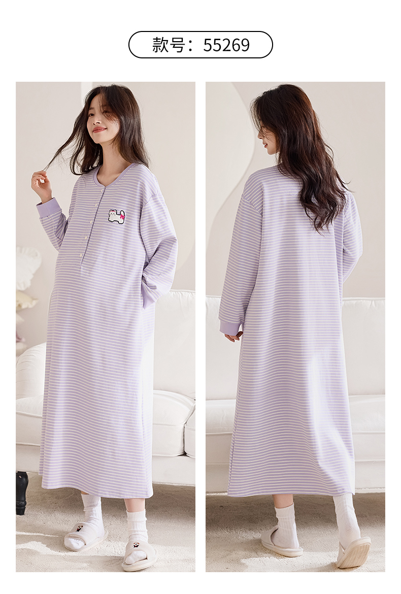 洛兰沙家居馆 2026新款长袖全棉纯棉孕妇睡裙女带胸垫产前产后哺乳喂奶月子服连衣裙 月子裙6