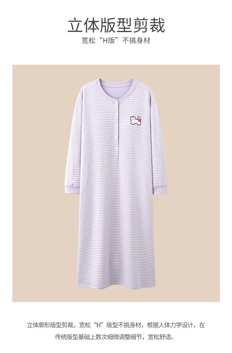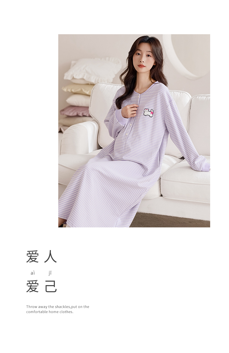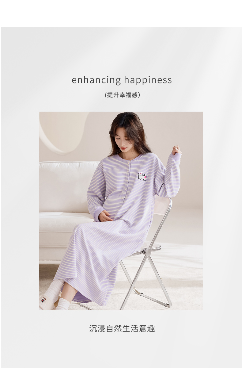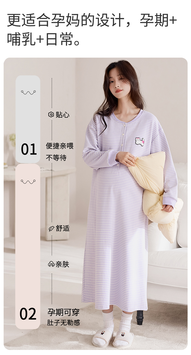 商品名称:洛兰沙家居馆 2026新款长袖全棉纯棉孕妇睡裙女带胸垫产前产后哺乳喂奶月子服连衣裙 月子裙6