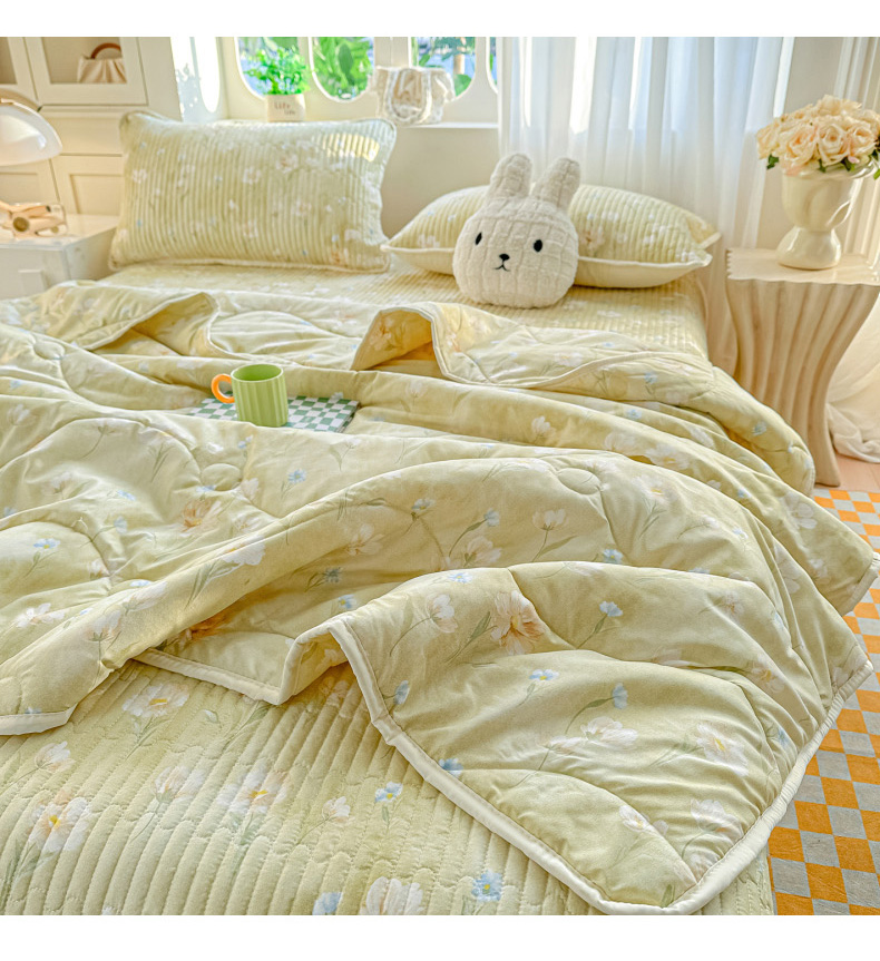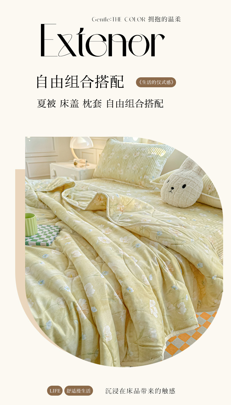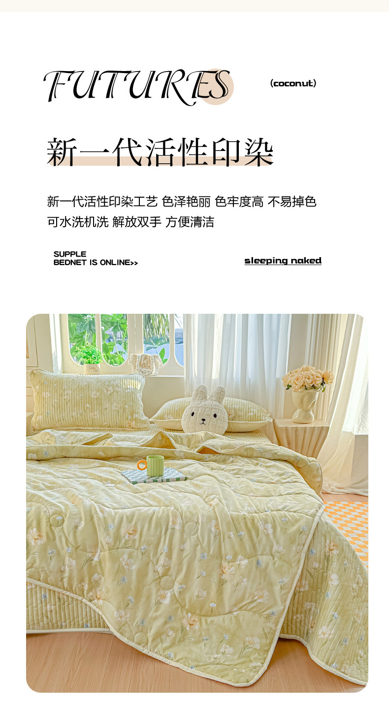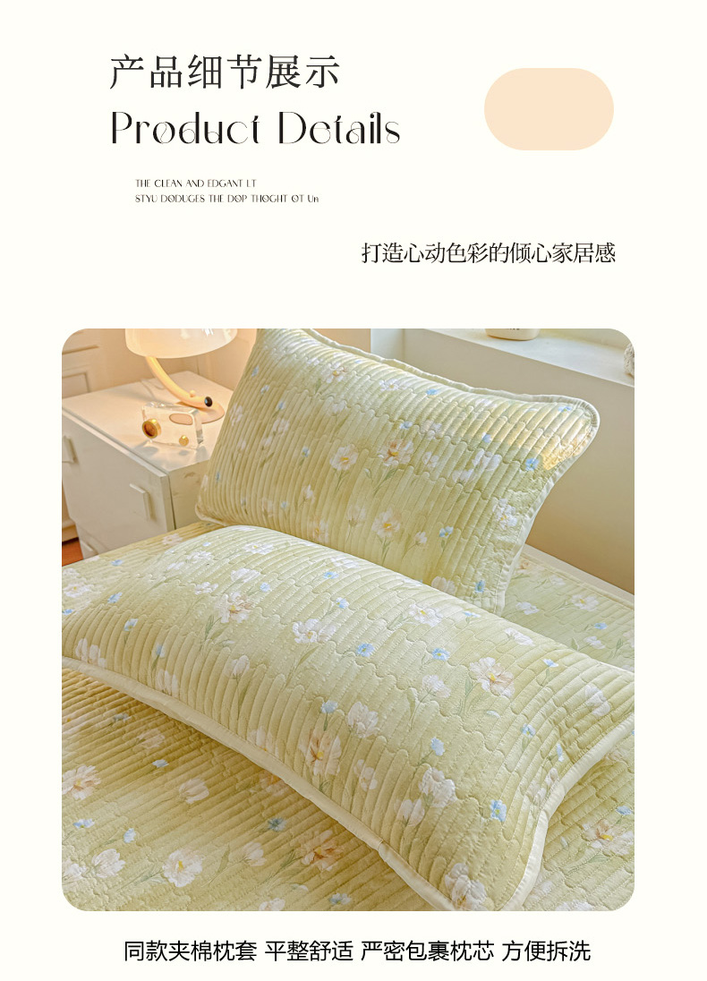 • 91家纺网 家纺一手货源 找家纺 慕澄家纺 2026新款小清新印花水洗棉床盖单品床盖床盖单件 绿尧