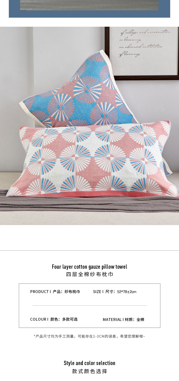 (总)朴尔家纺-毛巾被2025新款彩棉国潮风全棉六层纱布枕巾,彩色星光-枕巾,繁花朵朵-枕巾,芳华-枕巾,花间物语-橘枕巾,花间物语-蓝枕巾,花田印象-枕巾,柠香-灰枕巾,柠香-咖枕巾,似锦-枕巾