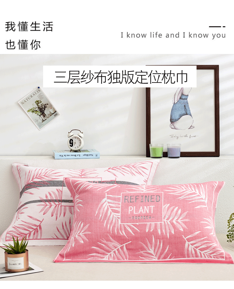 商品名称:朴尔家纺-毛巾被 2026新款混纺三层纱布枕巾 圣诞树-粉