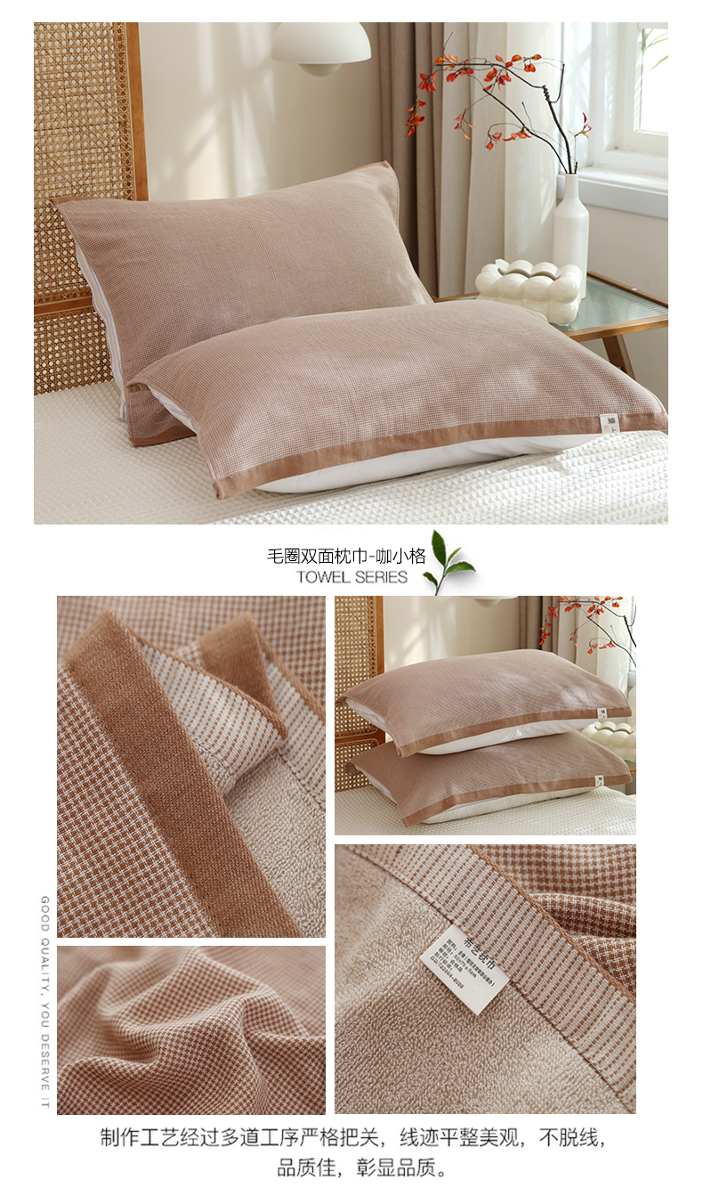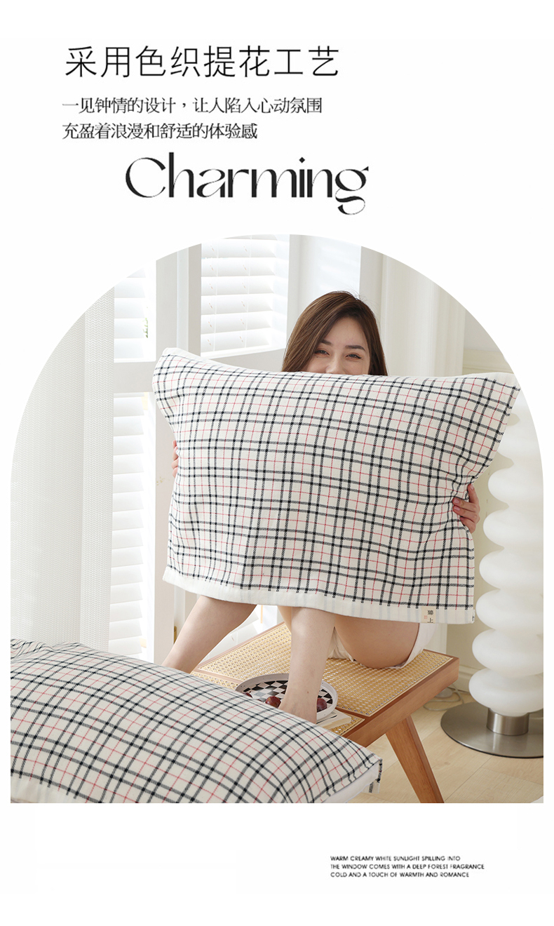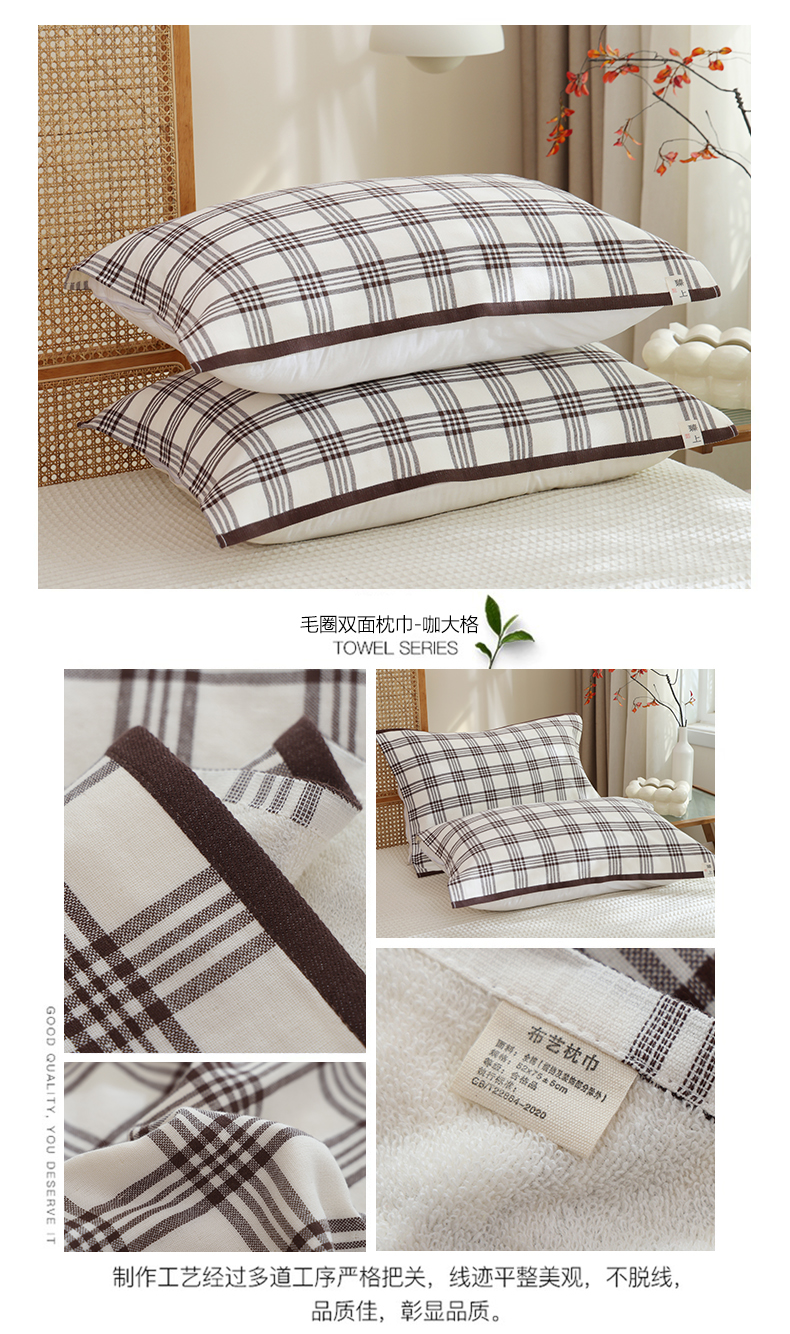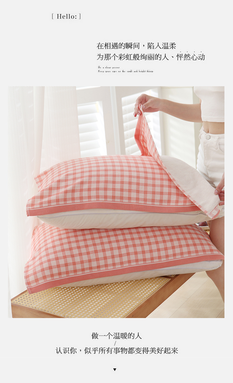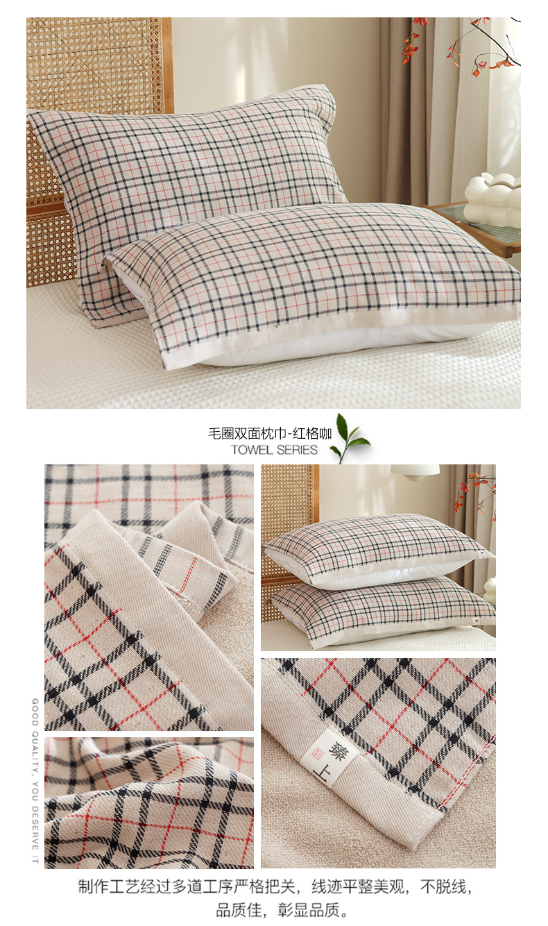 朴尔家纺-毛巾被 2026新款全棉无印风纱布毛圈加厚色织提花枕巾 毛圈双面枕巾-红格白