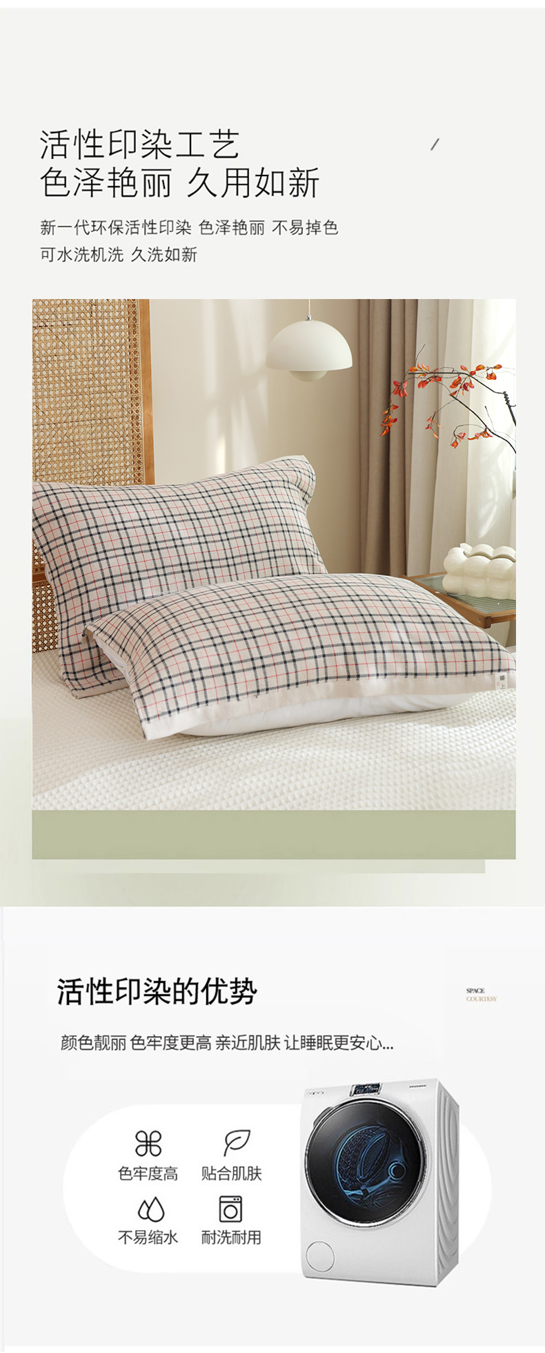 商品名称:朴尔家纺-毛巾被 2026新款全棉无印风纱布毛圈加厚色织提花枕巾 毛圈双面枕巾-红格白