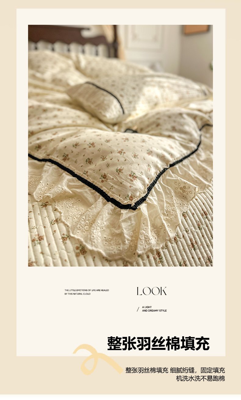 (总)美梦家纺 2026新款高克重全棉花边云感棉床盖四件套,希雅莉·米,雅格·粉,樱桃蜜·咖,尤丽叶·咖,紫藤碎花·咖,莓莓素语·粉,暖小象·兰,浅叶·米,希雅莉·灰