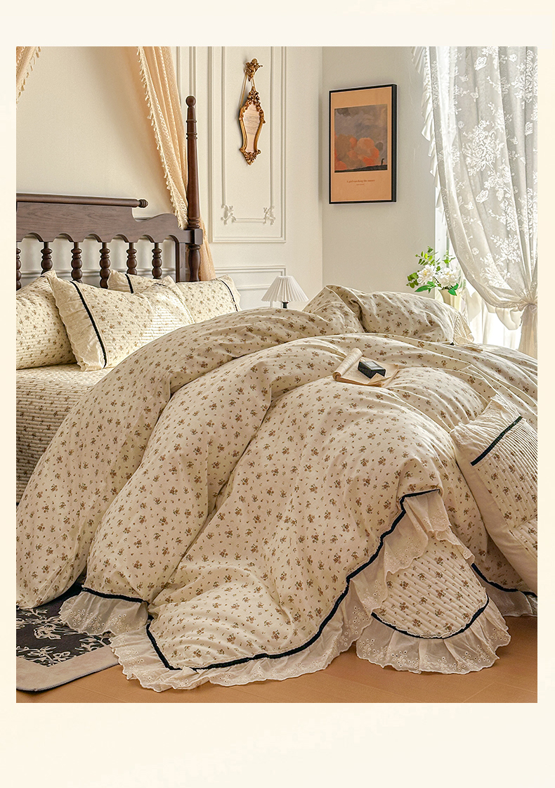 商品名称:美梦家纺 2026春夏新款全棉花边全棉床盖四件套系列 春暖花开