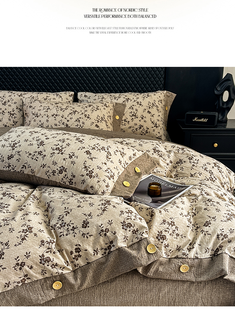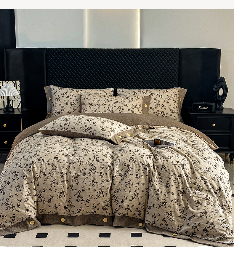 当前位置: 91家纺网 > 商品网购 > 床品套件 > 四件套 > 其它四件套 > 晚爱家纺(原晚安家居) 2026新款加厚双层纱原麻纽扣款四件套 茶里