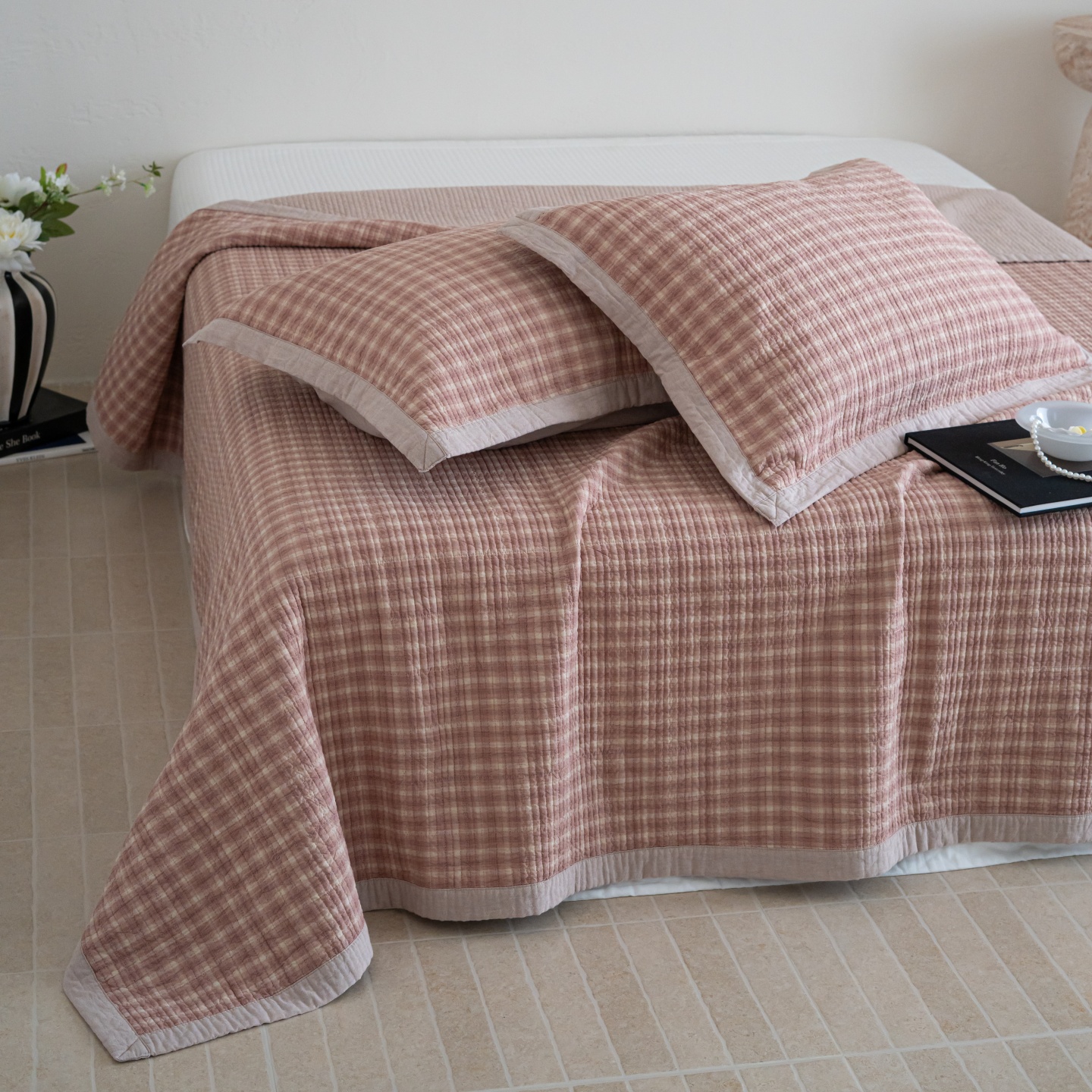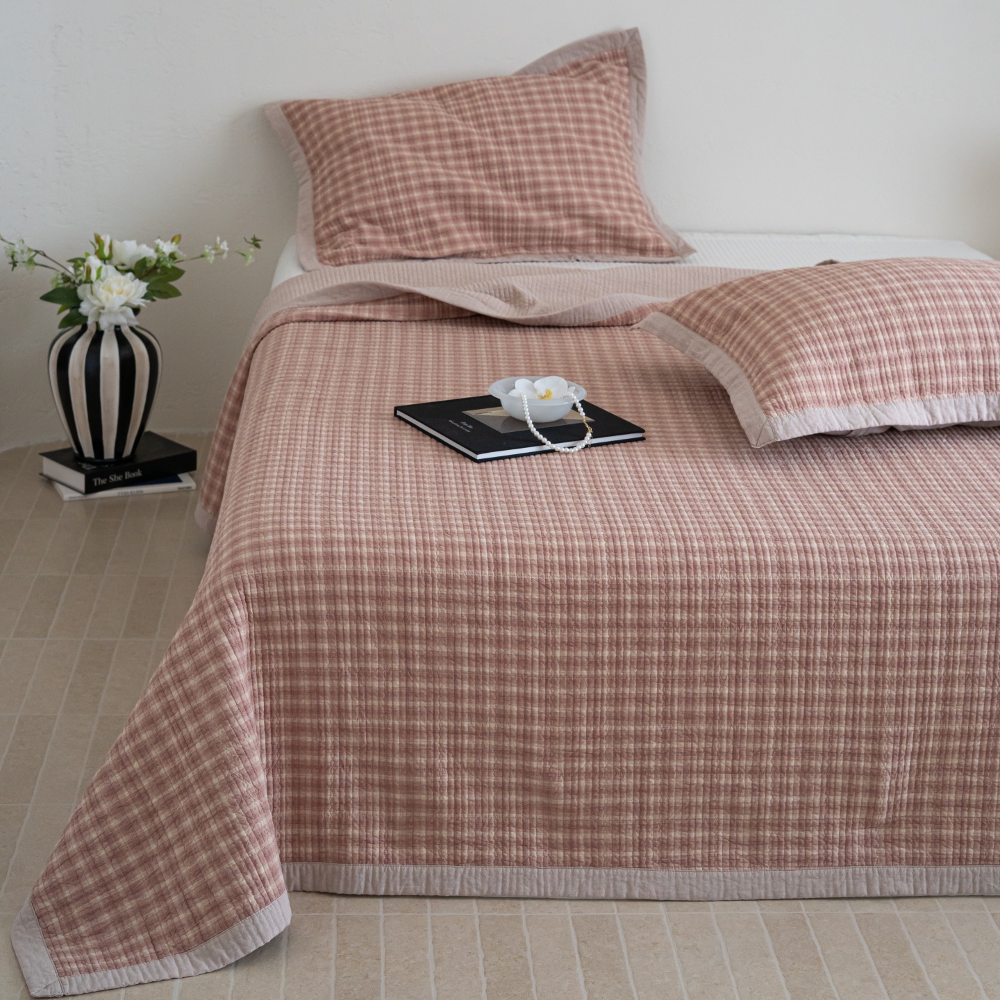 (总)床盖工厂店 2026新款双面水洗全棉填充棉花床盖三件套-朵拉系列,朵拉-粉,朵拉-灰,朵拉-咖,朵拉-绿,组合图