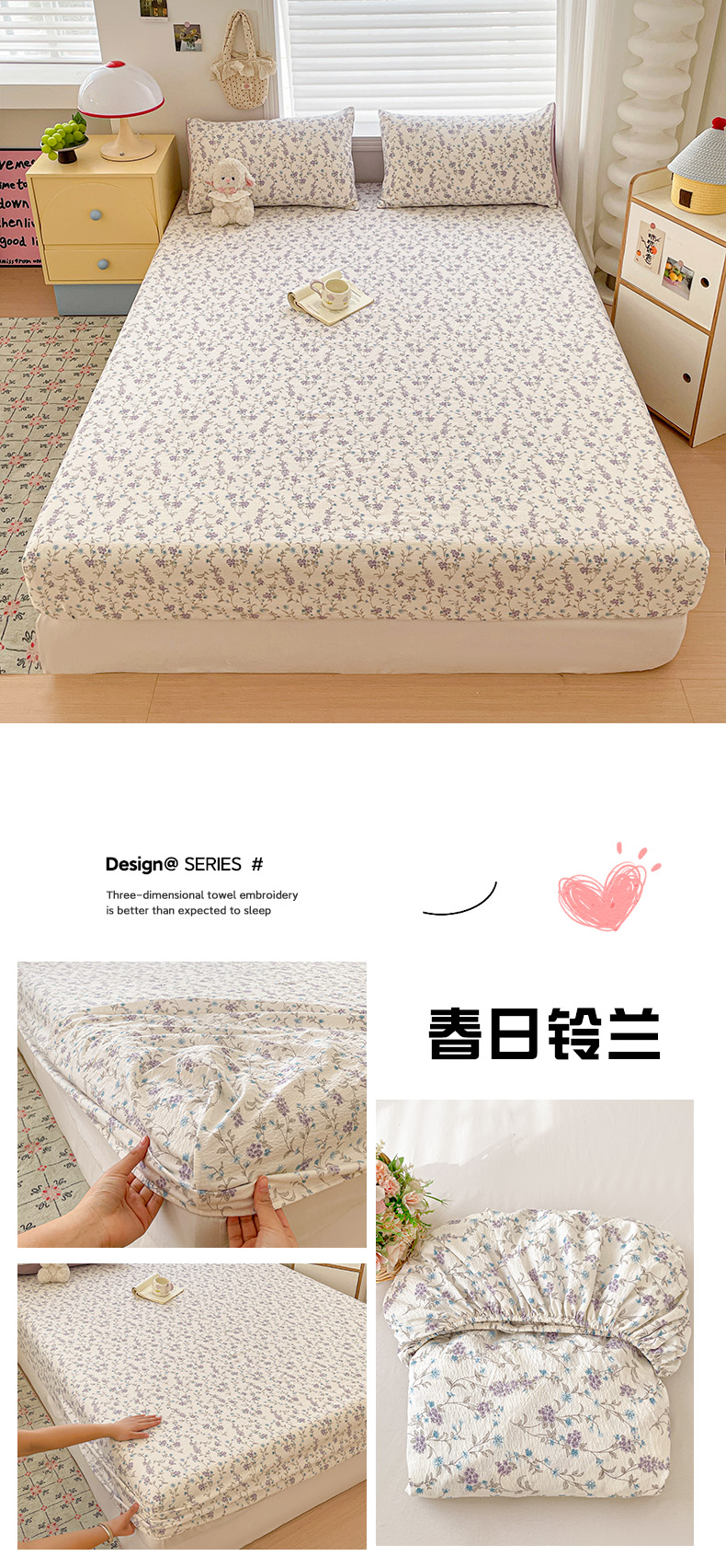 (总)立森 2026春夏新款云感皱皱纱泡芙纱床笠单枕套系列-床拍图,爱心小兔,芭宠假日蓝,白桃乌龙,宝莉粉,波点熊,春日铃兰,丛林兔,花畔里,凯特蓝,可爱熊熊,蓝格蛋糕熊,萌萌小象,蜜桃草莓,茉莉清风,铅笔熊,清浅,森澜,碎花萌宠,夏日木槿,小福马,小马咖,栀夏,紫色风信,紫韵花茶,组合图