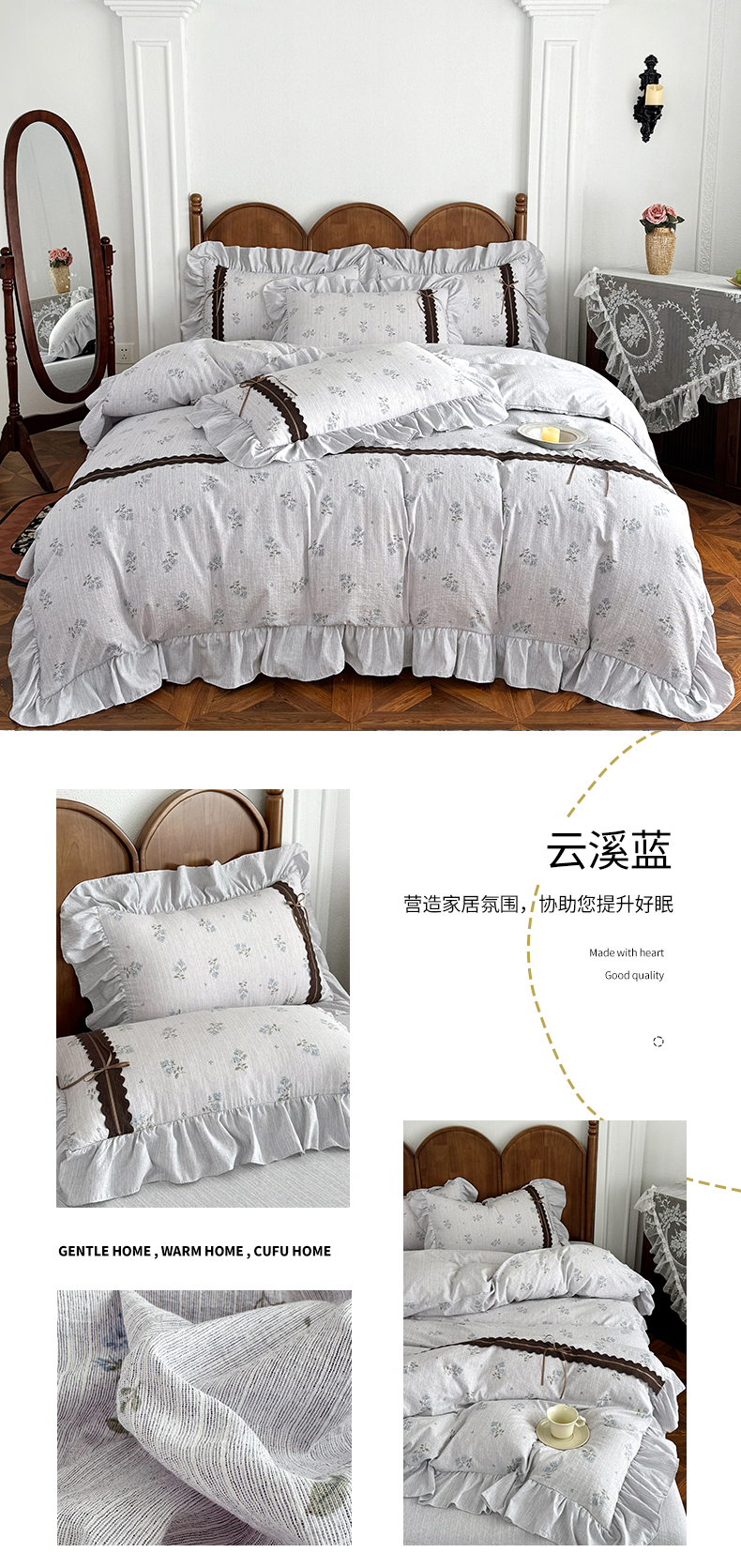 (总)迷尚家居 2026新款提花色织麻花边四件套,草莓粉,蝶恋花,费尔岛灰,好运结咖,红樱桃茶,佳人紫,可可蓝,素锦豆沙,素锦灰,素锦蓝,小兰花绿,星星狗绿,薰衣草紫,野餐,云溪粉,云溪蓝