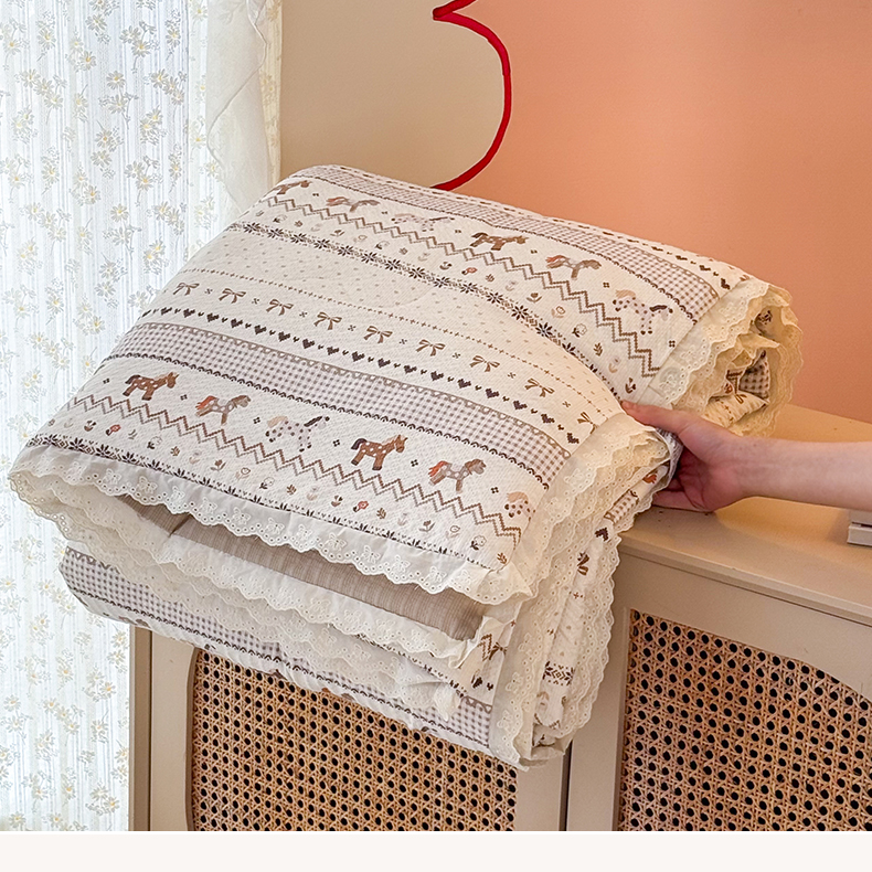 艺菲阁家纺 2026新款A类泡芙棉夏凉被被子被芯 栗色木马纹