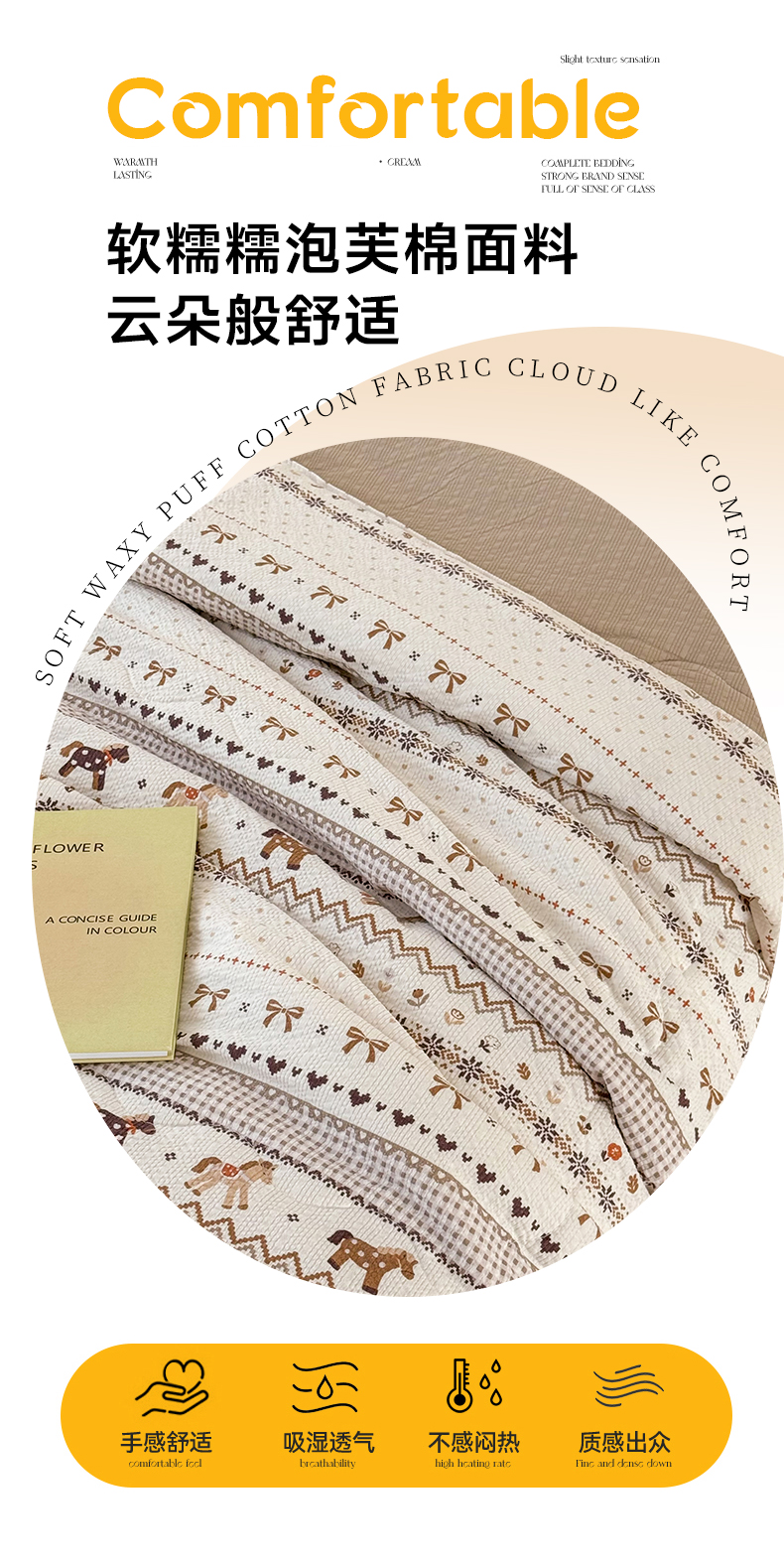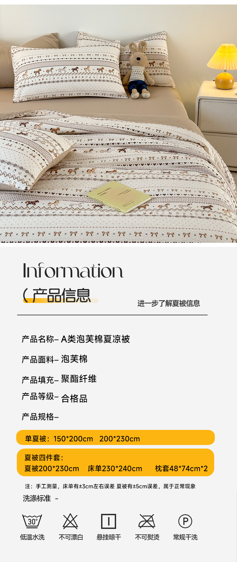 商品名称:艺菲阁家纺 2026新款A类泡芙棉夏凉被被子被芯 栗色木马纹