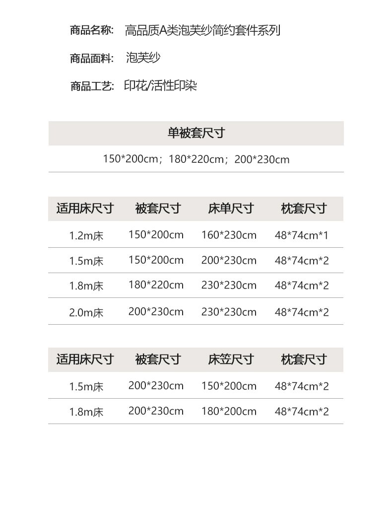 150*200cm单被套 | ¥25.00 |