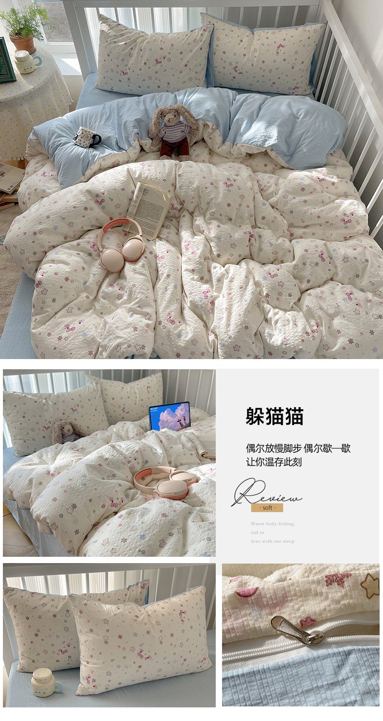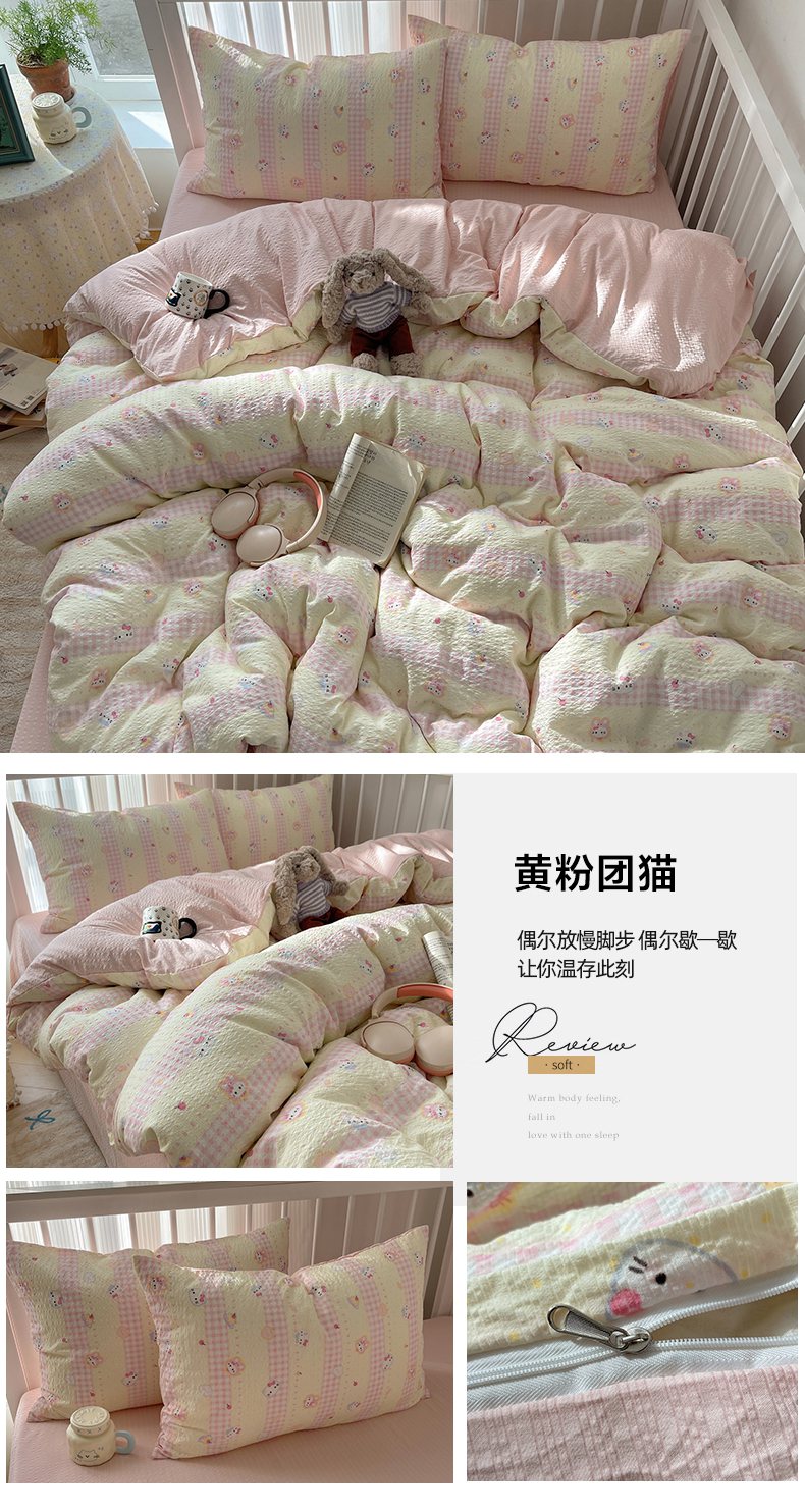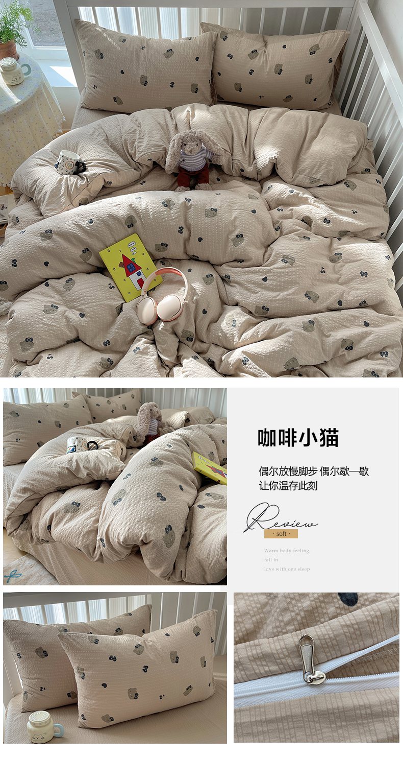 当前位置: 91家纺网 > 商品网购 > 床品套件 > 四件套 > 其它四件套 > 贝扬思家纺 2026新款高品质A类泡芙纱-可爱猫猫系列普通款四件套(110g) 奥利奥小猫