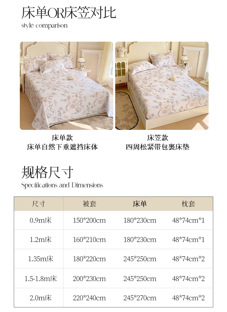 【床单款】2.0x2.45四件套-被套180x220 | ¥130.00 |