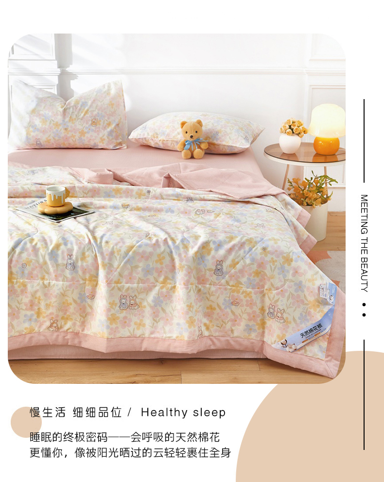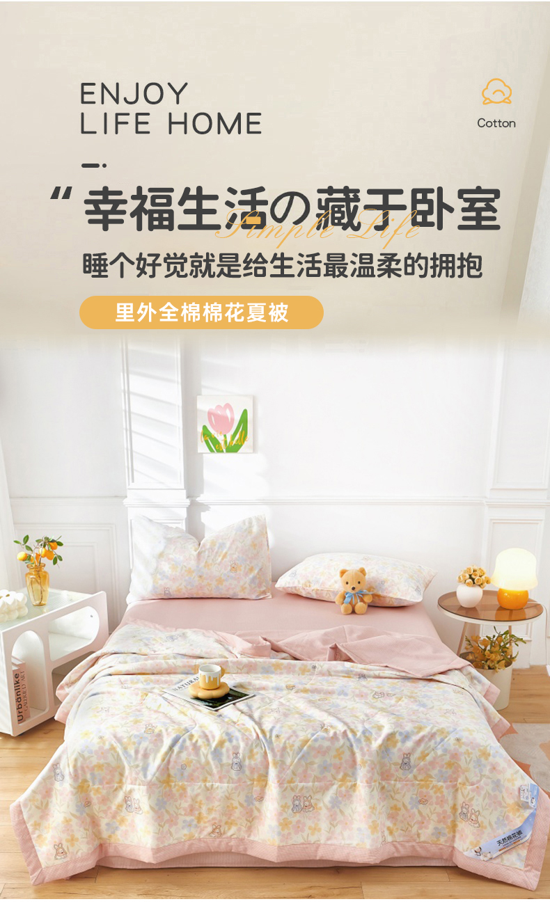• 91家纺网 家纺一手货源 找家纺 黛妮雅 2026新款里外全棉印花棉花被纯棉夏被夏凉被空调被 夏被四件套许愿兔