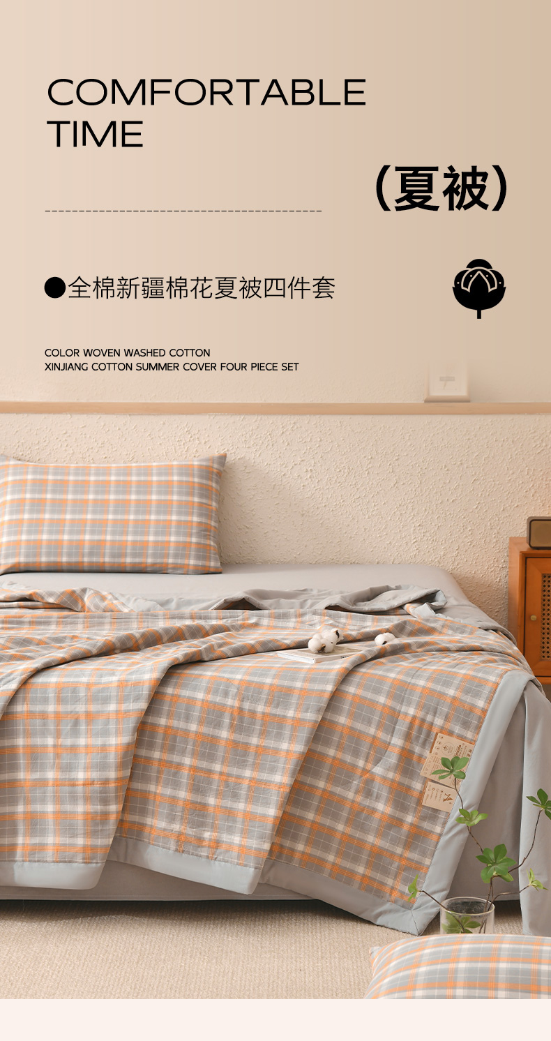 当前位置: 91家纺网 > 商品网购 > 被子 > 夏被 > 培童家纺 2026新款全棉色织水洗棉A类棉花夏被可机洗空调被四件套床单枕套 印象-橘
