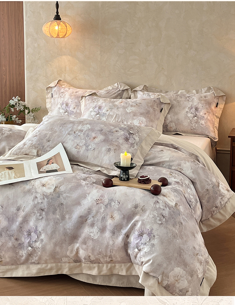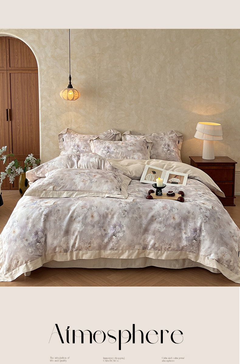 (总)金昱纺 2026新款全棉50S长绒棉数码印花宽边埋绳款四件套(带精美礼盒包装),叶栖-咖,黛秋-粉,花织软梦,摩卡-绿,甜梦花栖,榭风轻眠