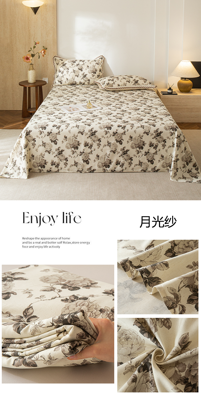 商品名称:优米家纺 2026新款棉麻印花床单单件床单单品 晨雾柔纱