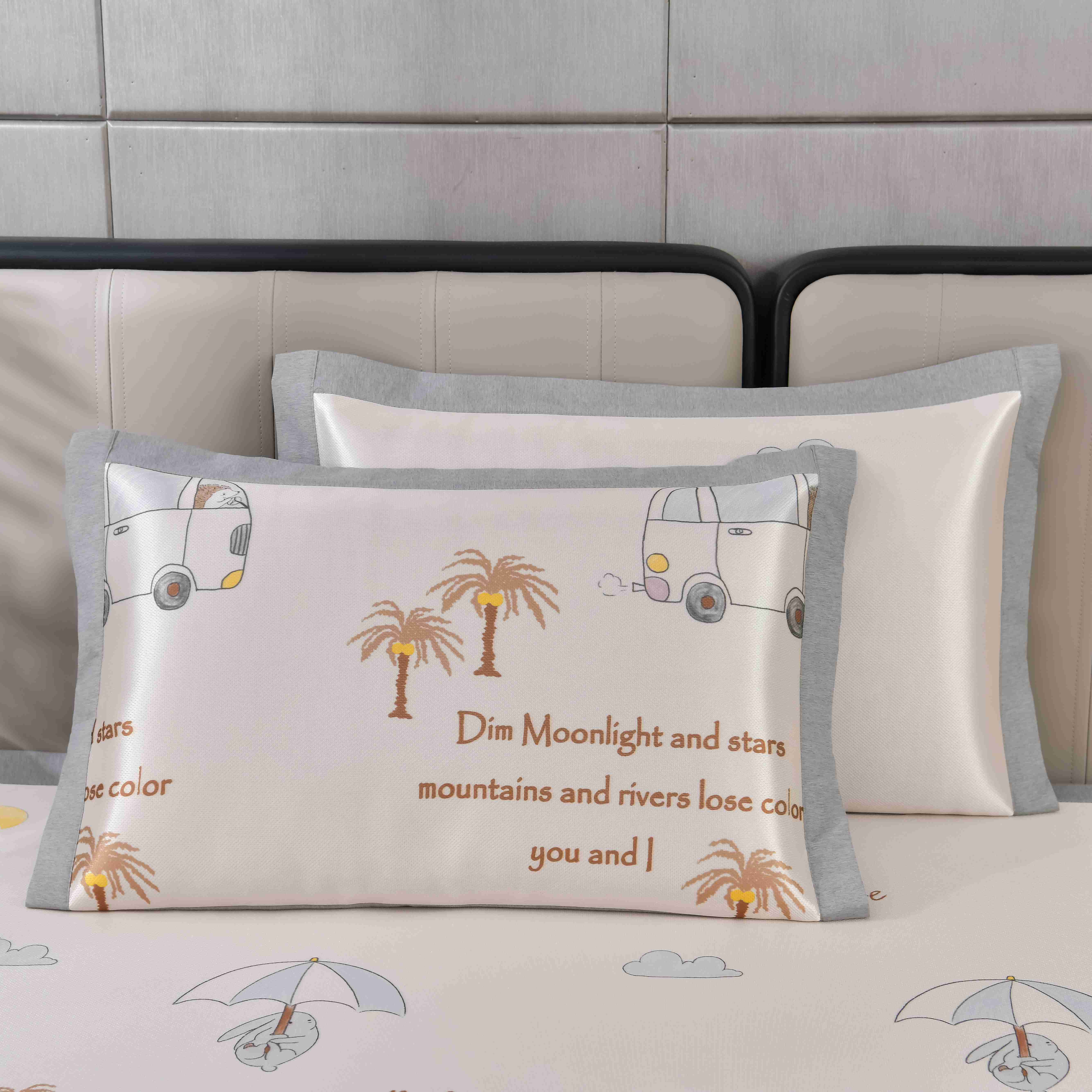 商品名称:小牛席业 2026新款碳光凉感印花冰丝凉枕套单枕套枕套单件系列 轻奢赫本