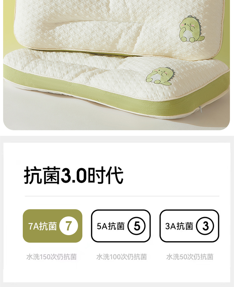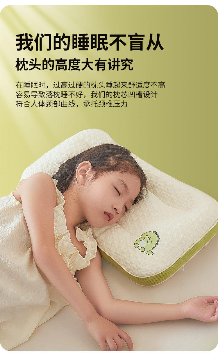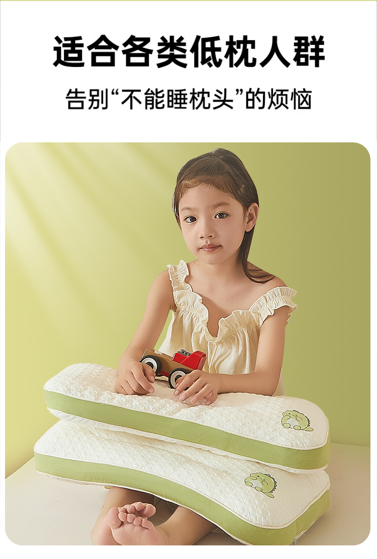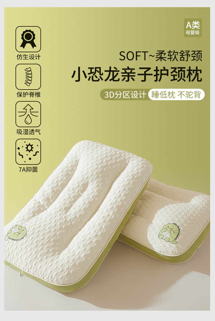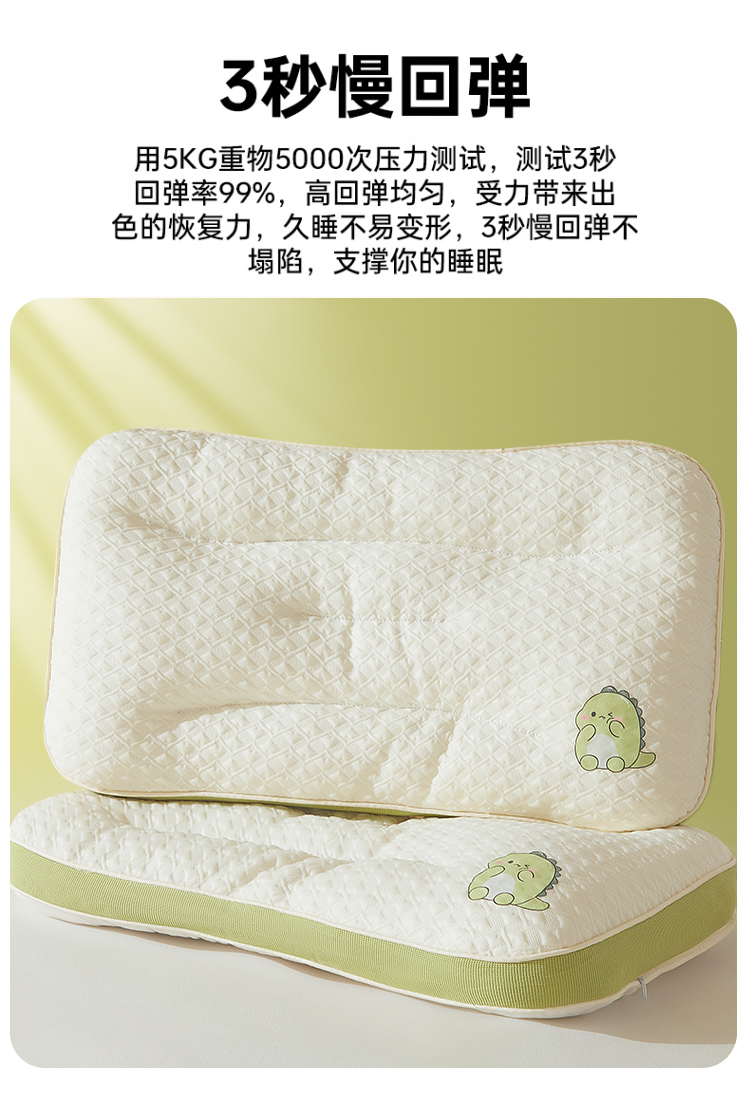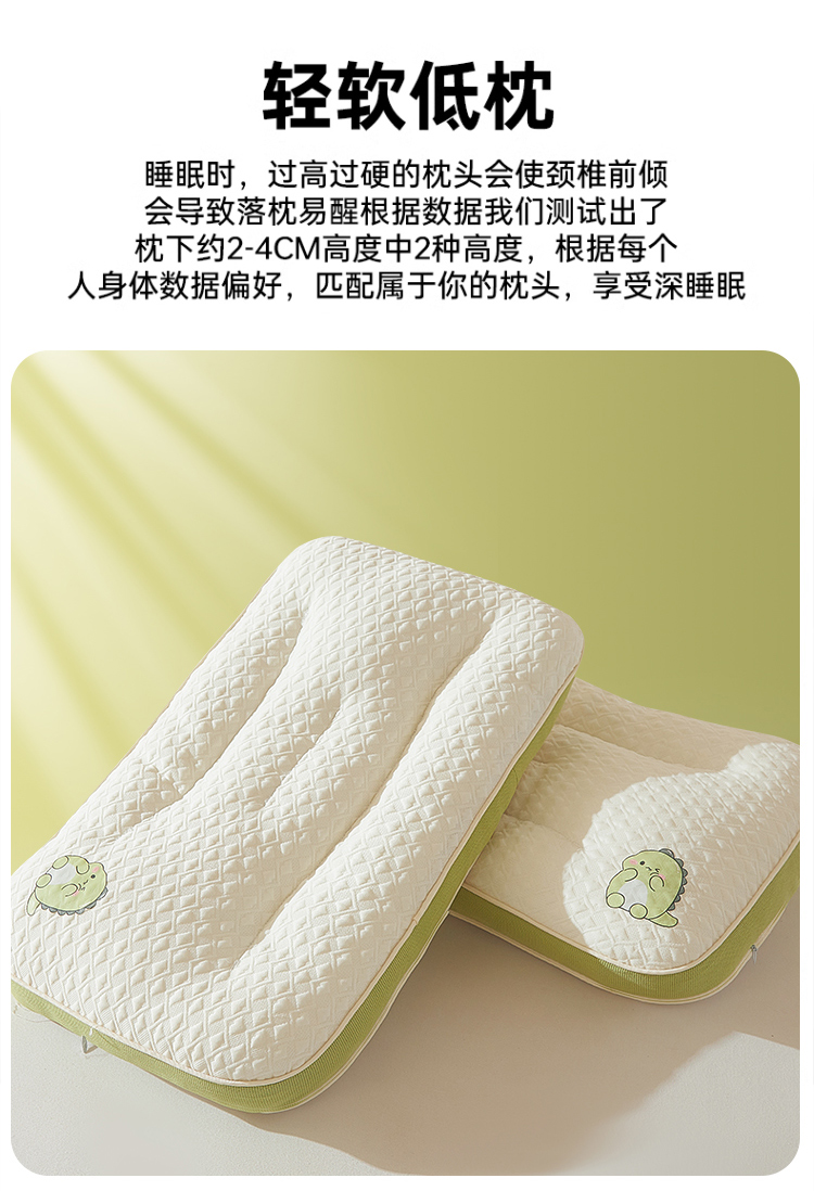 商品名称:(总)小桃姐家纺 2025新款卡通小恐龙亲子护颈椎低枕儿童枕头枕芯小学生宿舍