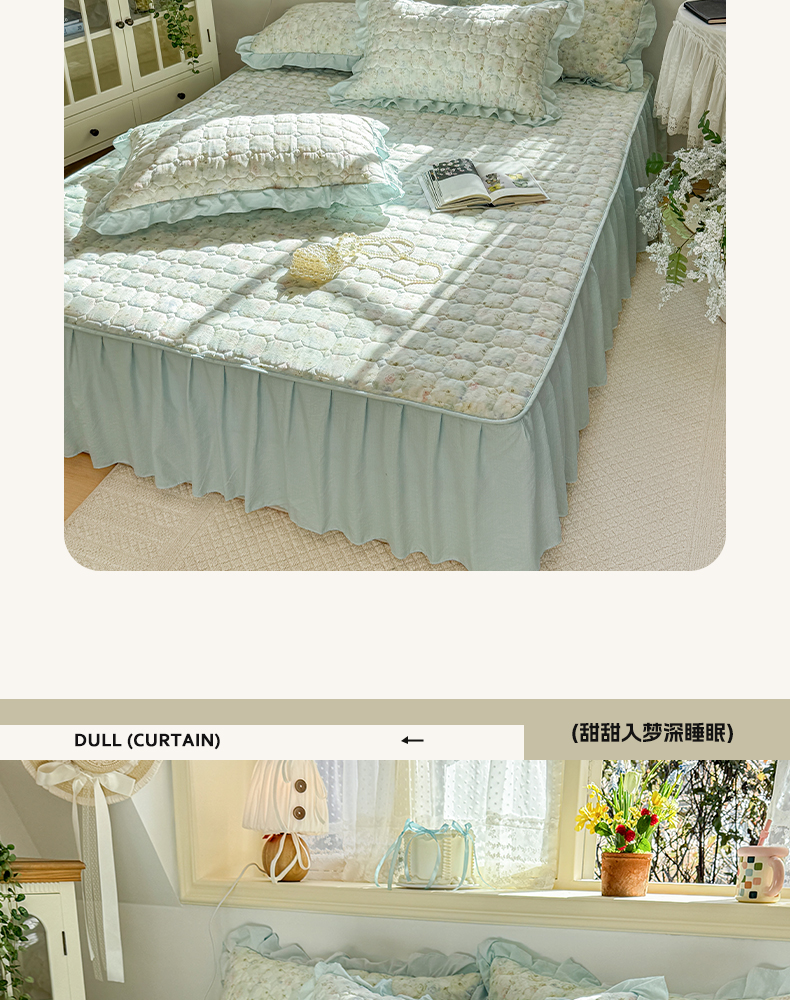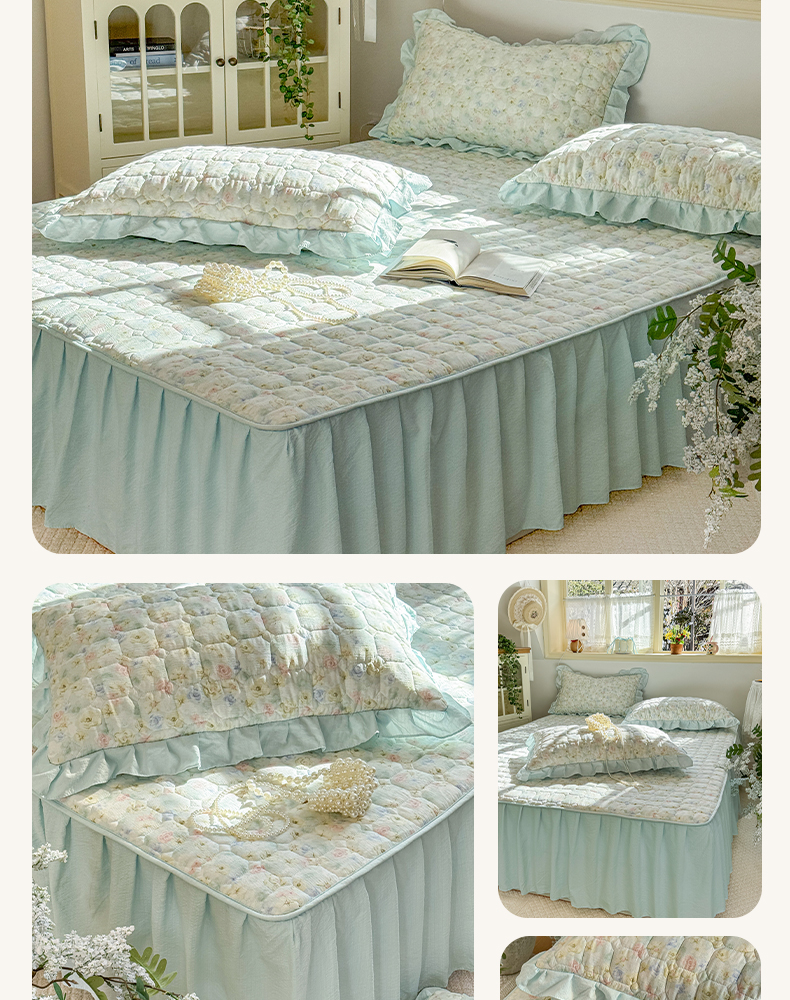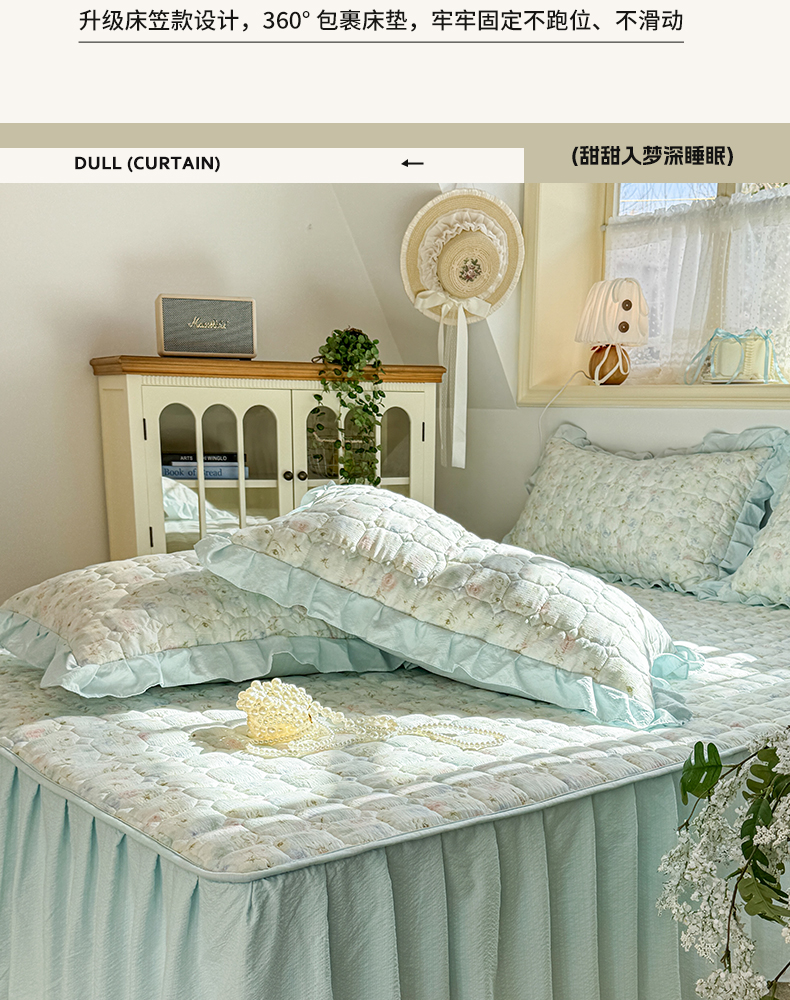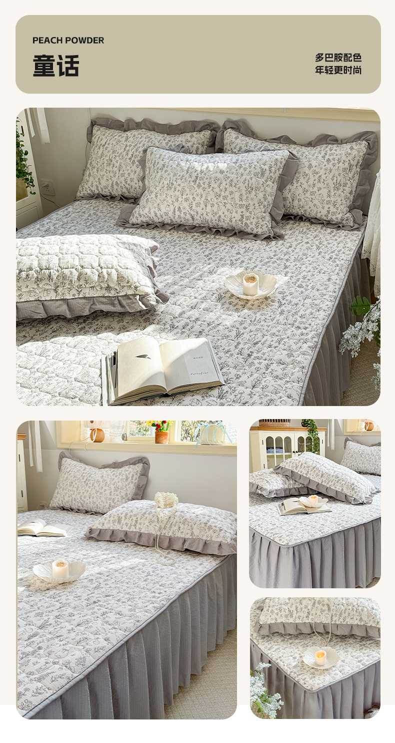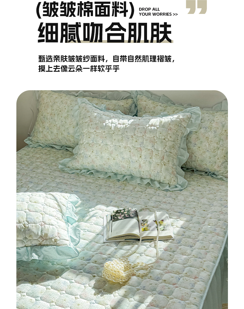 • 91家纺网 家纺一手货源 找家纺 禧缘家纺(原梦想家) 2026新款小清新皱皱纱木棉床裙式床笠印花三件套 月光