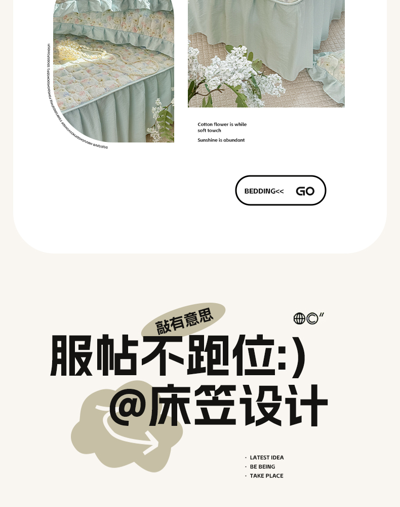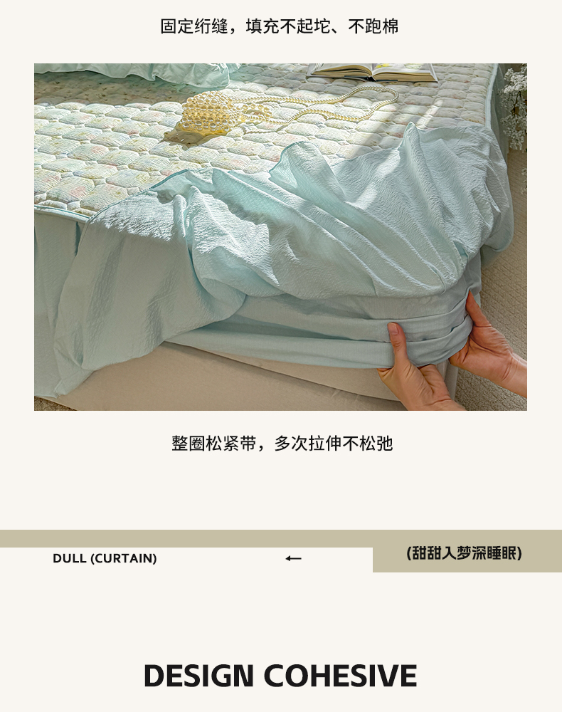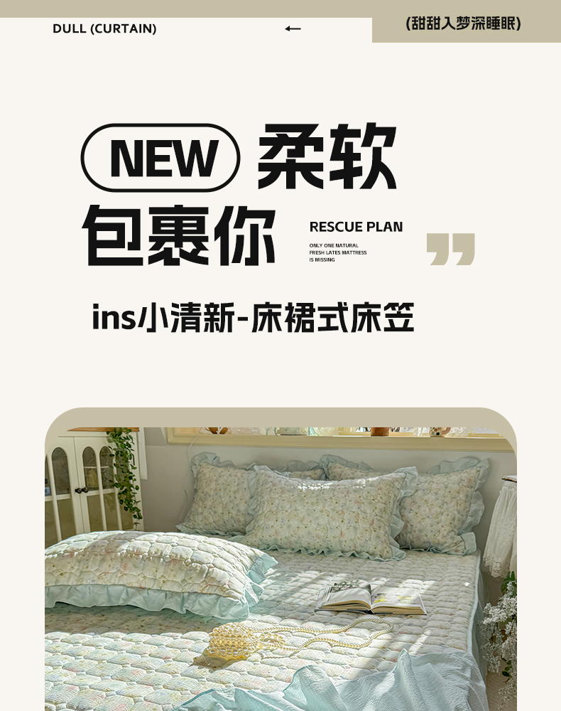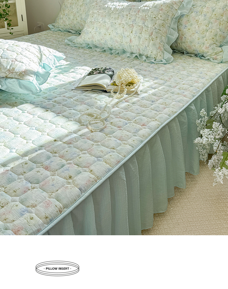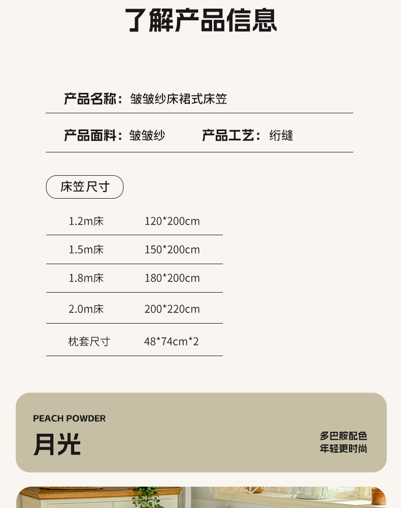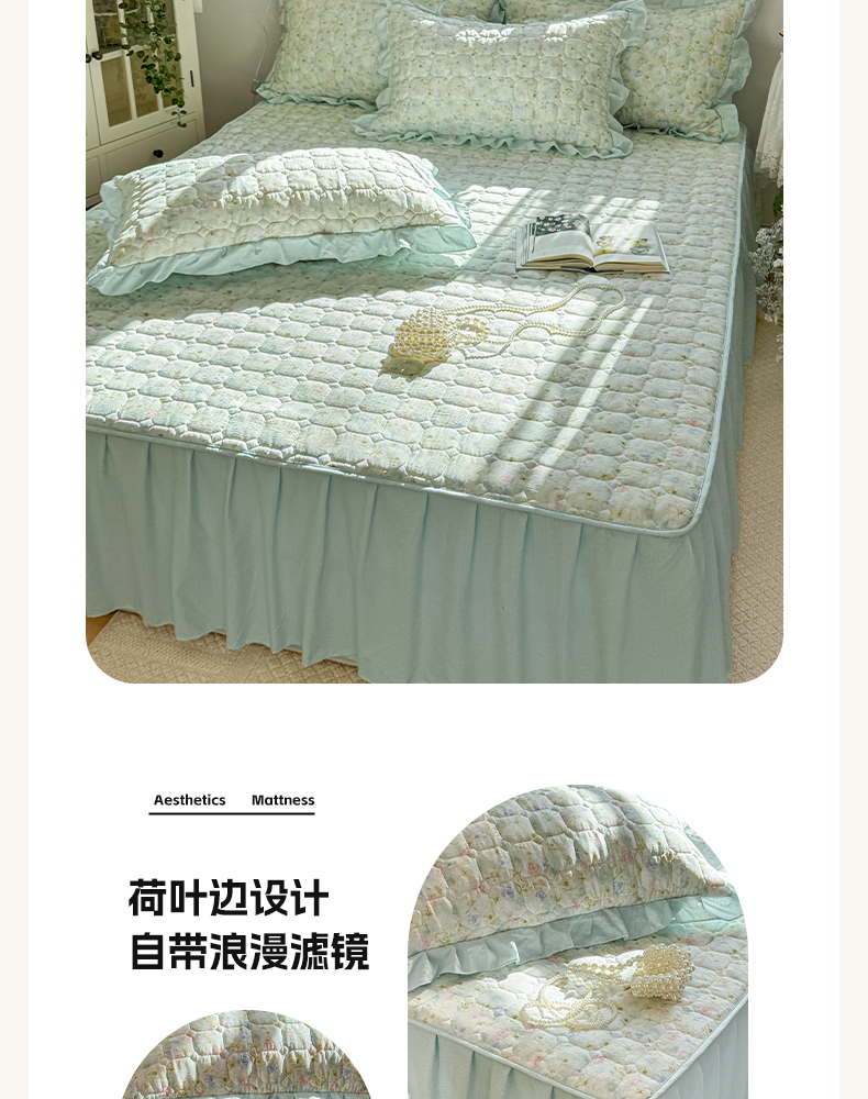 • 91家纺网 家纺一手货源 找家纺 禧缘家纺(原梦想家) 2026新款小清新皱皱纱木棉床裙式床笠印花三件套 月光