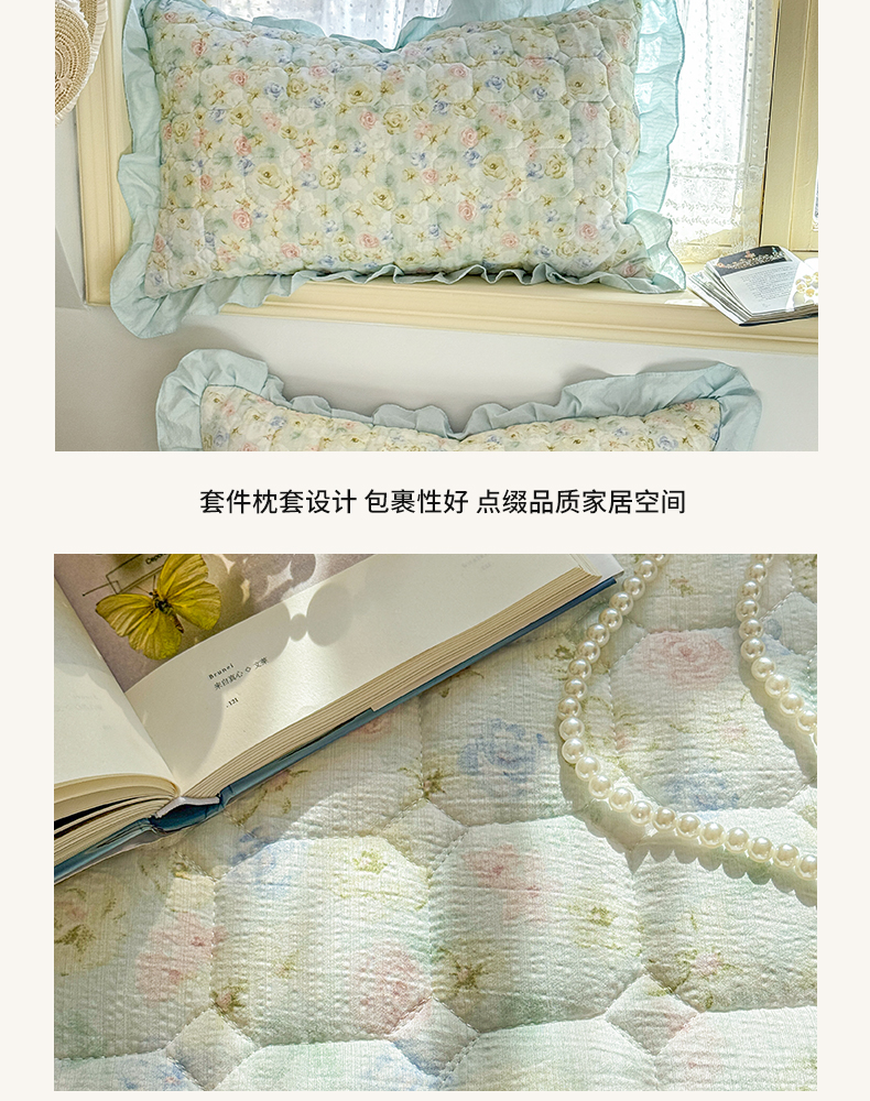 当前位置: 91家纺网 > 商品网购 > 床上用品 > 床笠 > 禧缘家纺(原梦想家) 2026新款小清新皱皱纱木棉床裙式床笠印花三件套 月光
