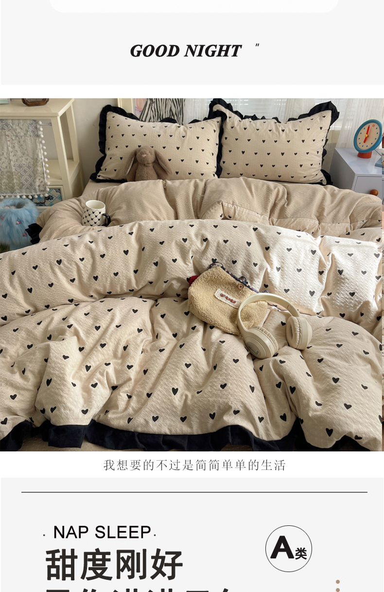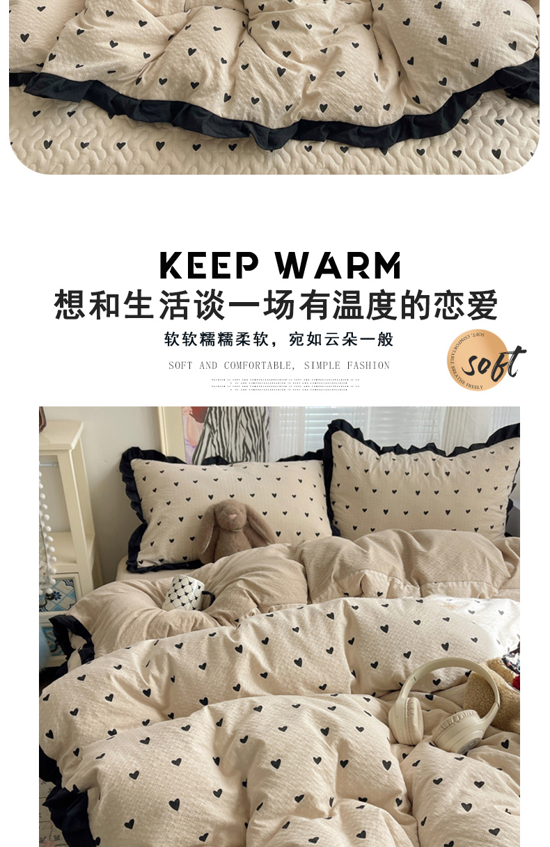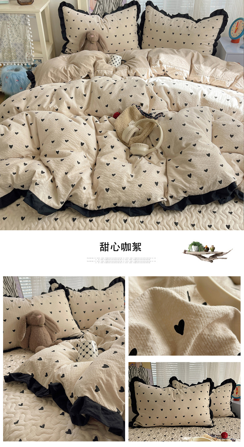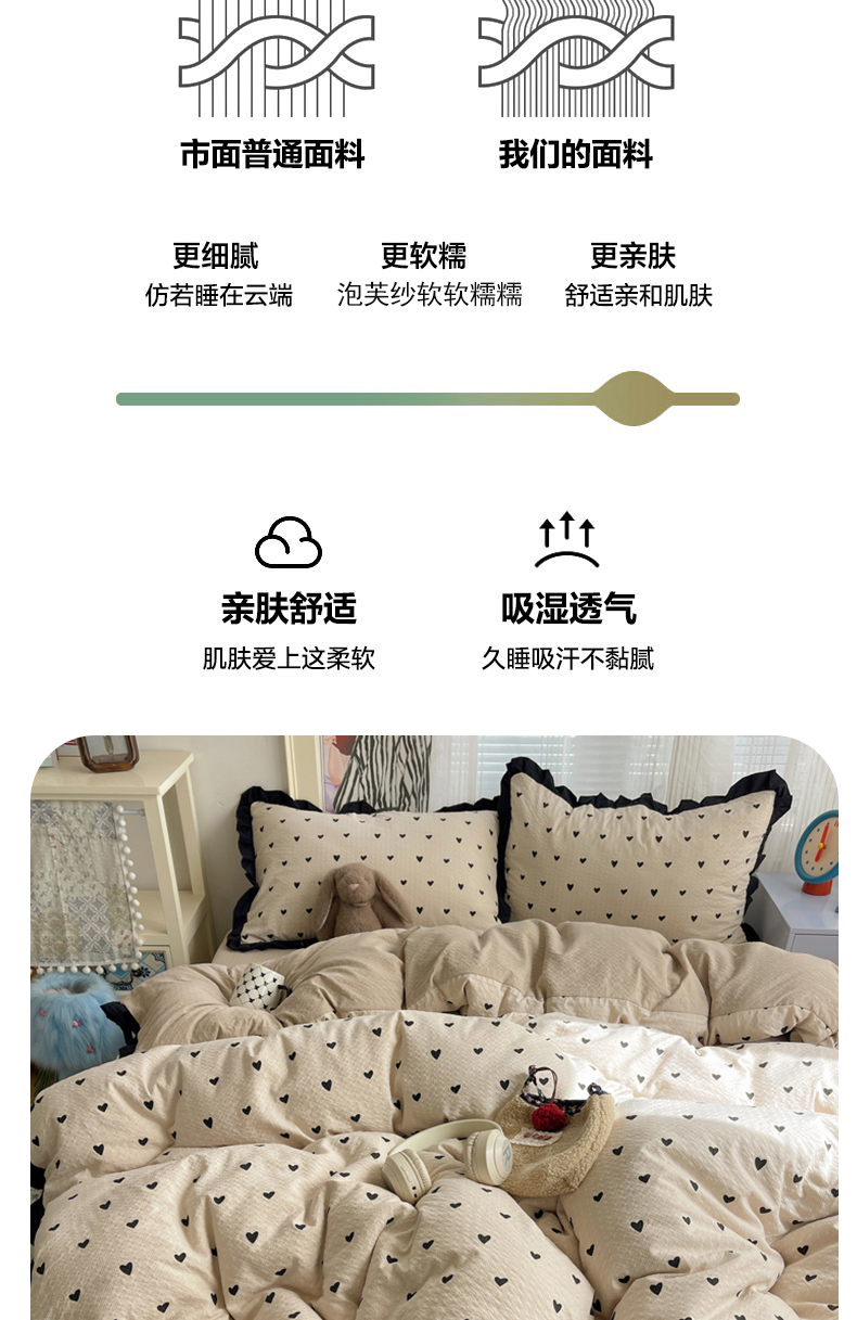 商品名称:迪梦姿家纺 2026新款高克重泡芙纱泡泡纱床盖款四件套系列 甜心咖絮