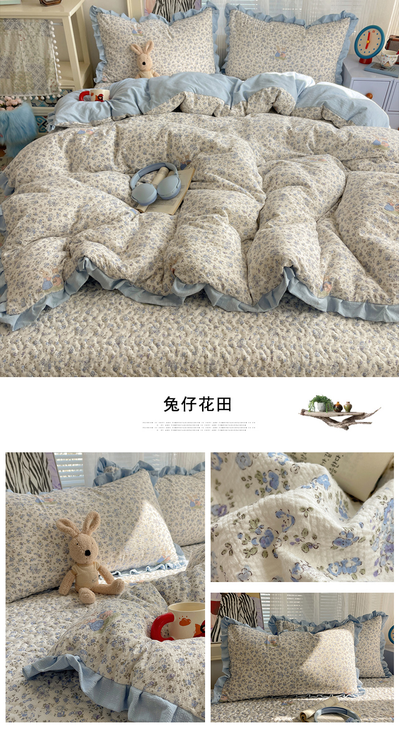(总)迪梦姿家纺 2026新款高克重泡芙纱泡泡纱床盖款四件套系列,紫雾花蝶集,春日甜桃心米,纯宅熊,躲猫猫,花野兔眠,灰樱桃,旧街星星,猫咪集粉,莓系花伐,描线小猫咖,木马小花团,浅沙花影黄,浅沙花影蓝,田园兔,甜喵块块,甜心咖絮,甜心木马卷,兔仔花田,小兔裙边,星野蝴蝶结,悦悦小兔,只闻花香