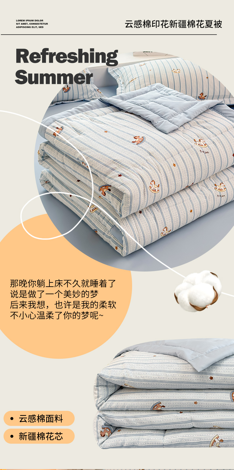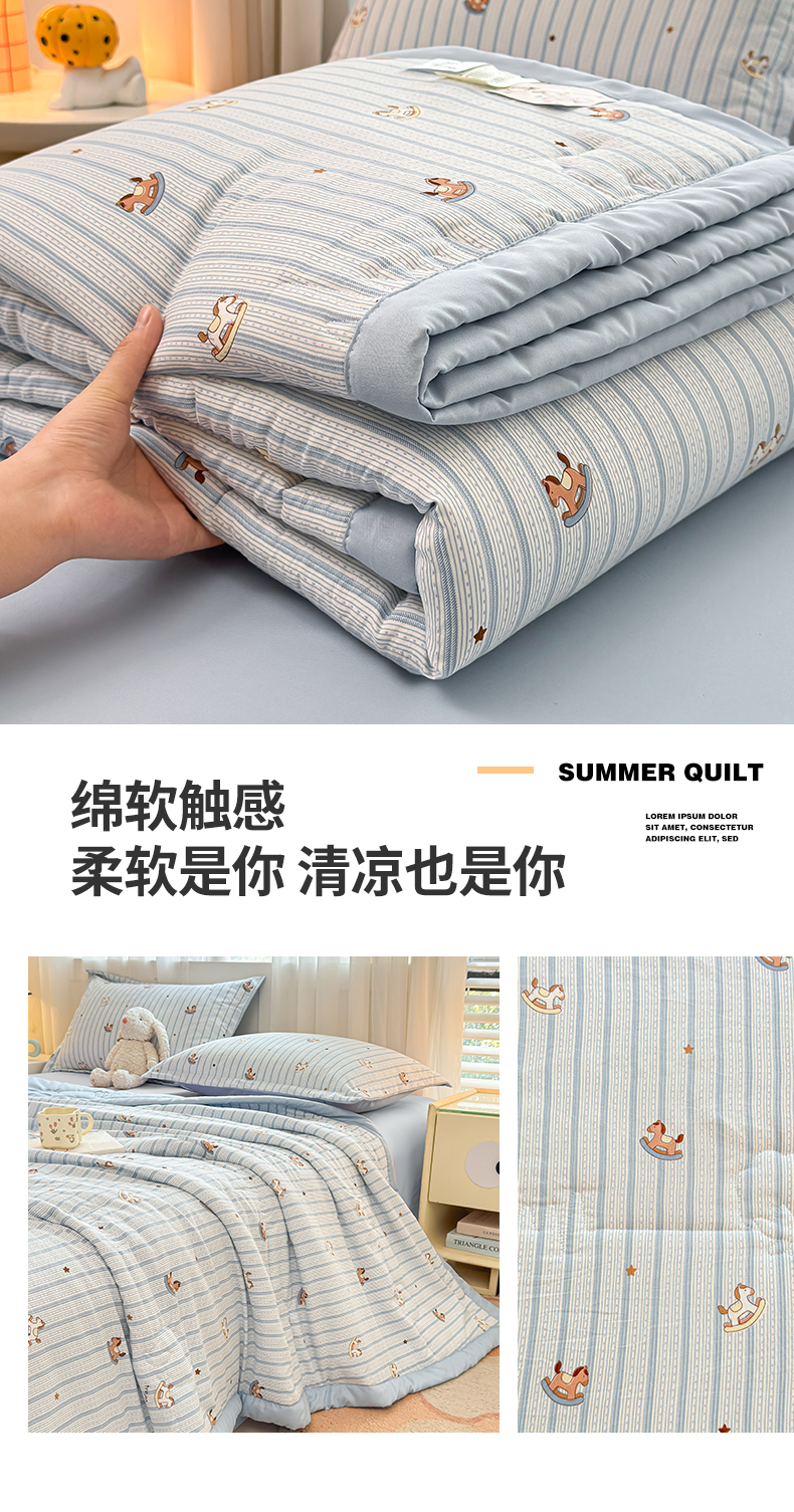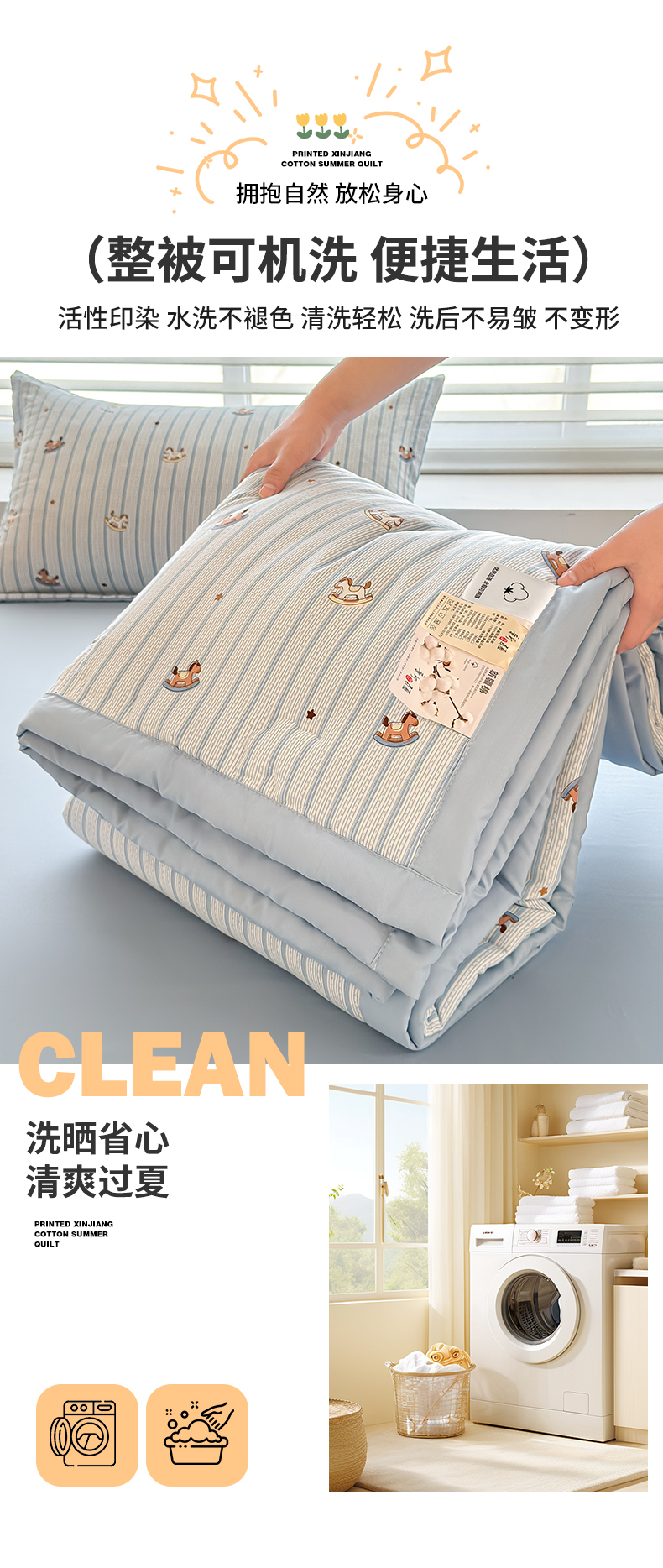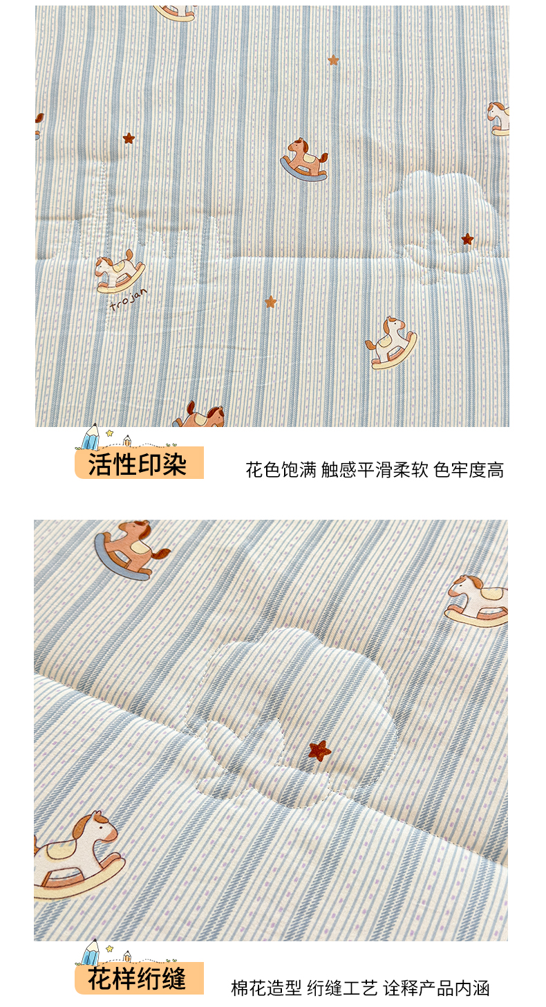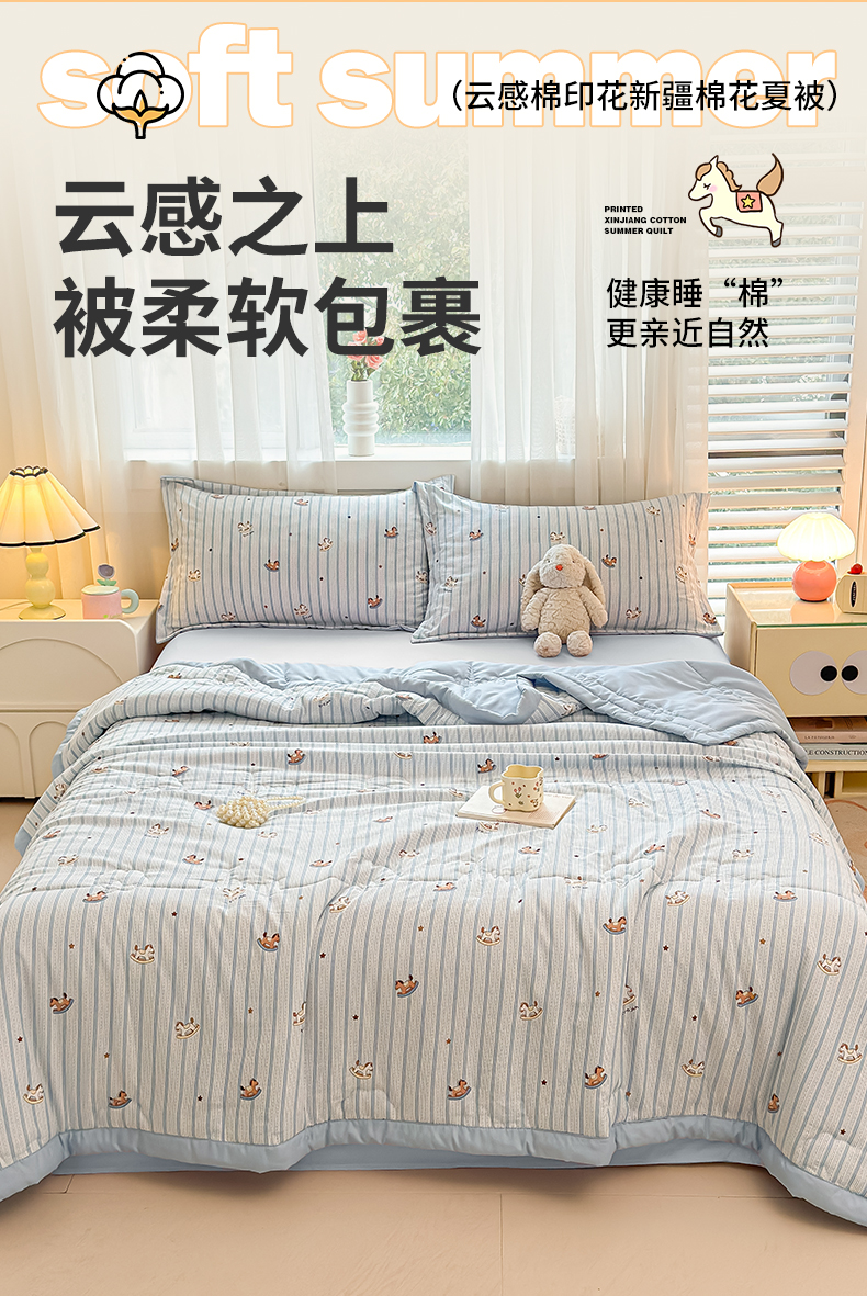 商品名称:2026新款A类新疆棉花夏凉被加宽包边水洗棉卡通印花吸湿透气棉花夏被空调被 凌香 摇摇马