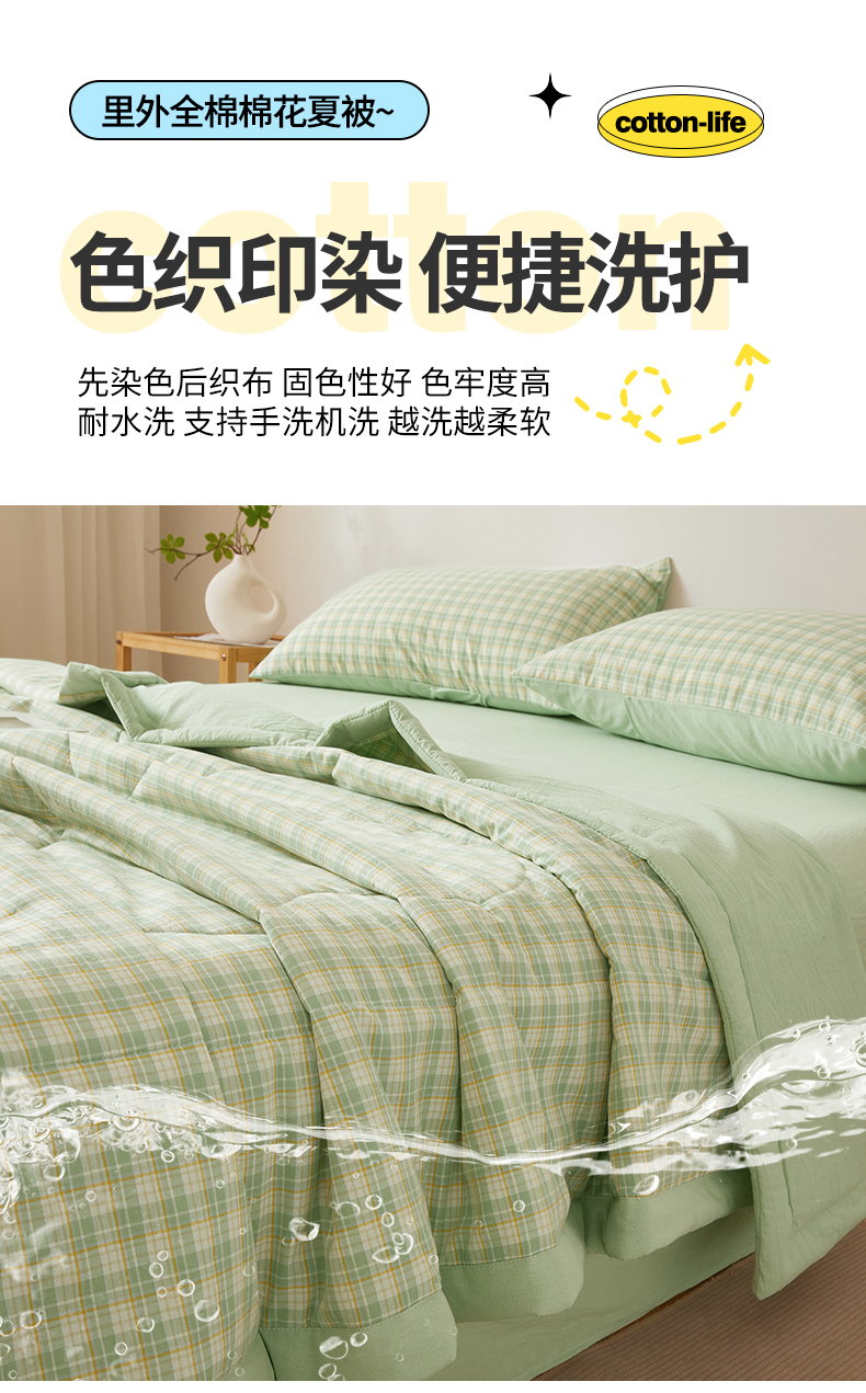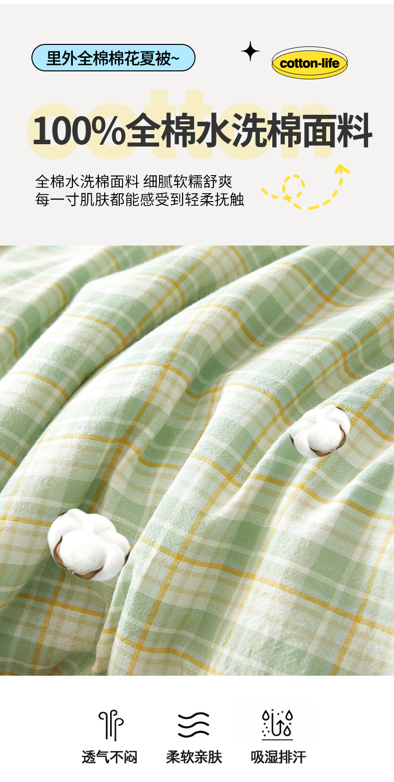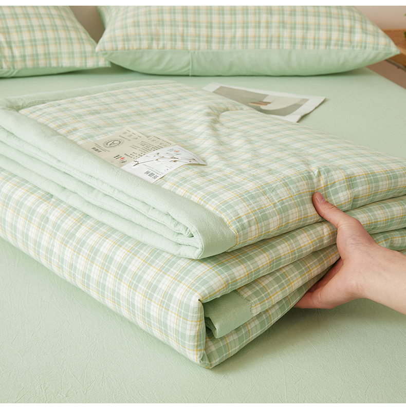 商品名称:2026新款A类里外全棉夏凉被100%新疆棉纯棉全棉填充无印格子款空调被全棉夏被 里外全棉-彩绿格