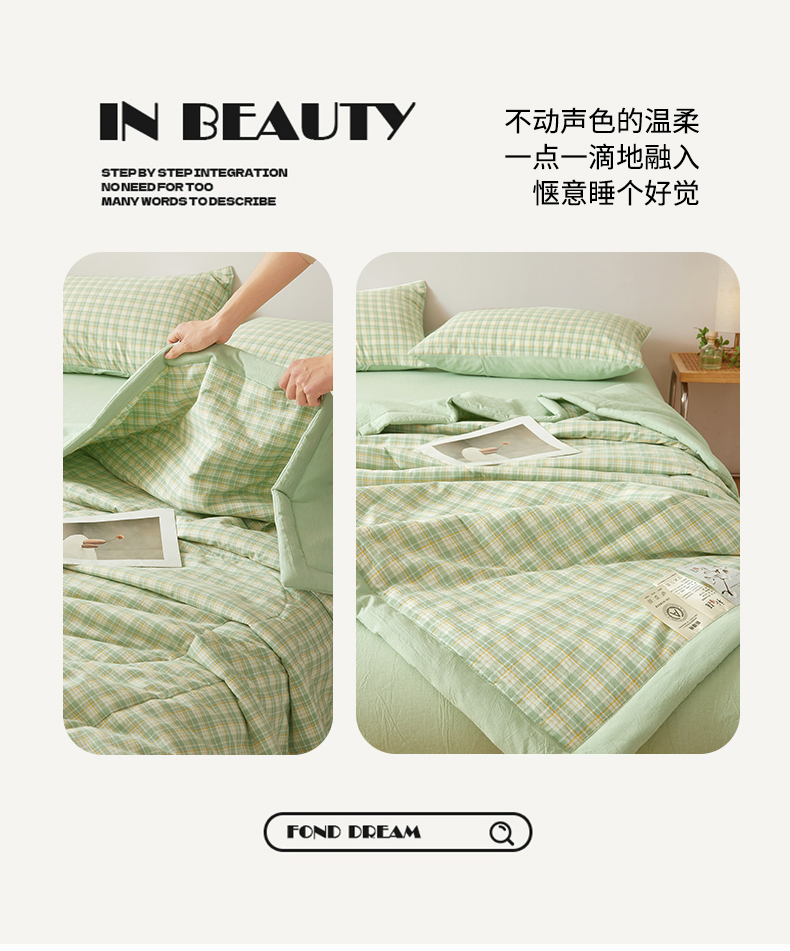 被子 > 夏被 > 2026新款A类里外全棉夏凉被100%新疆棉纯棉全棉填充无印格子款空调被全棉夏被 里外全棉-彩绿格