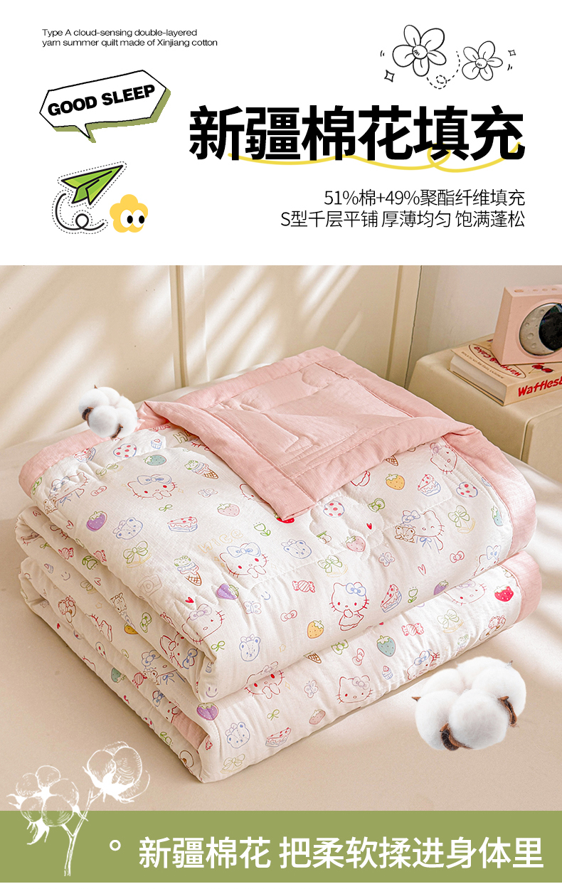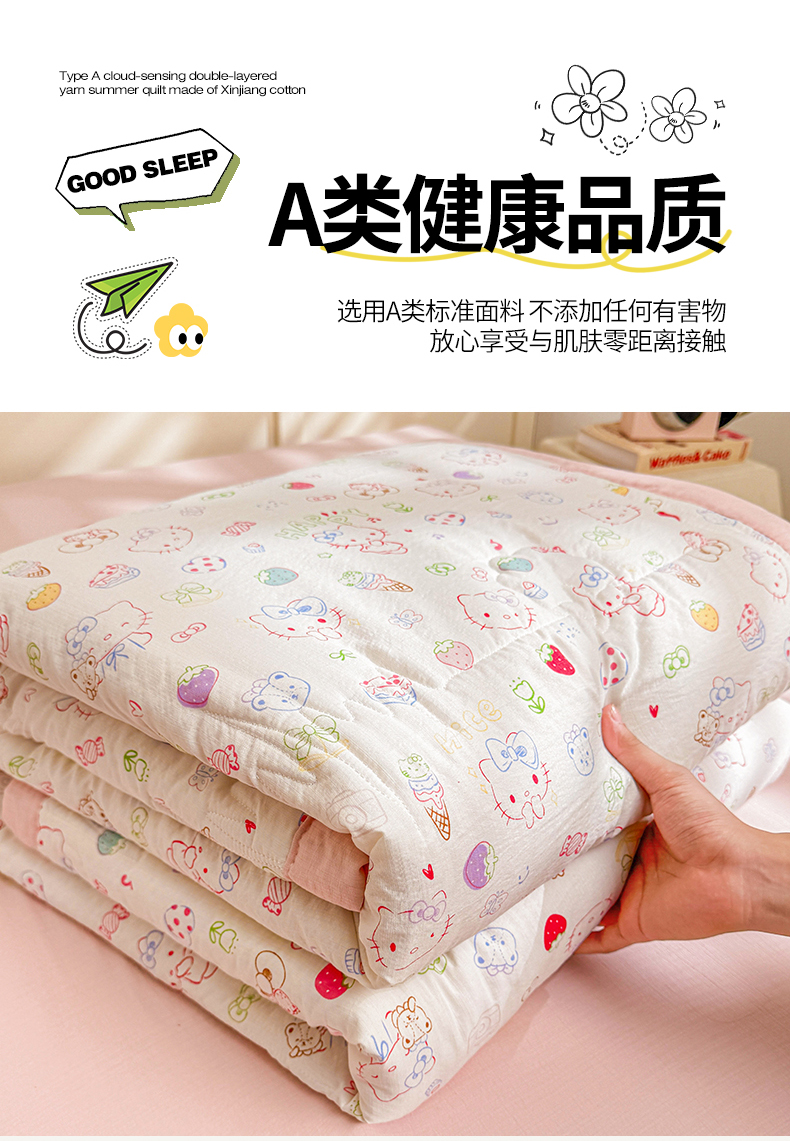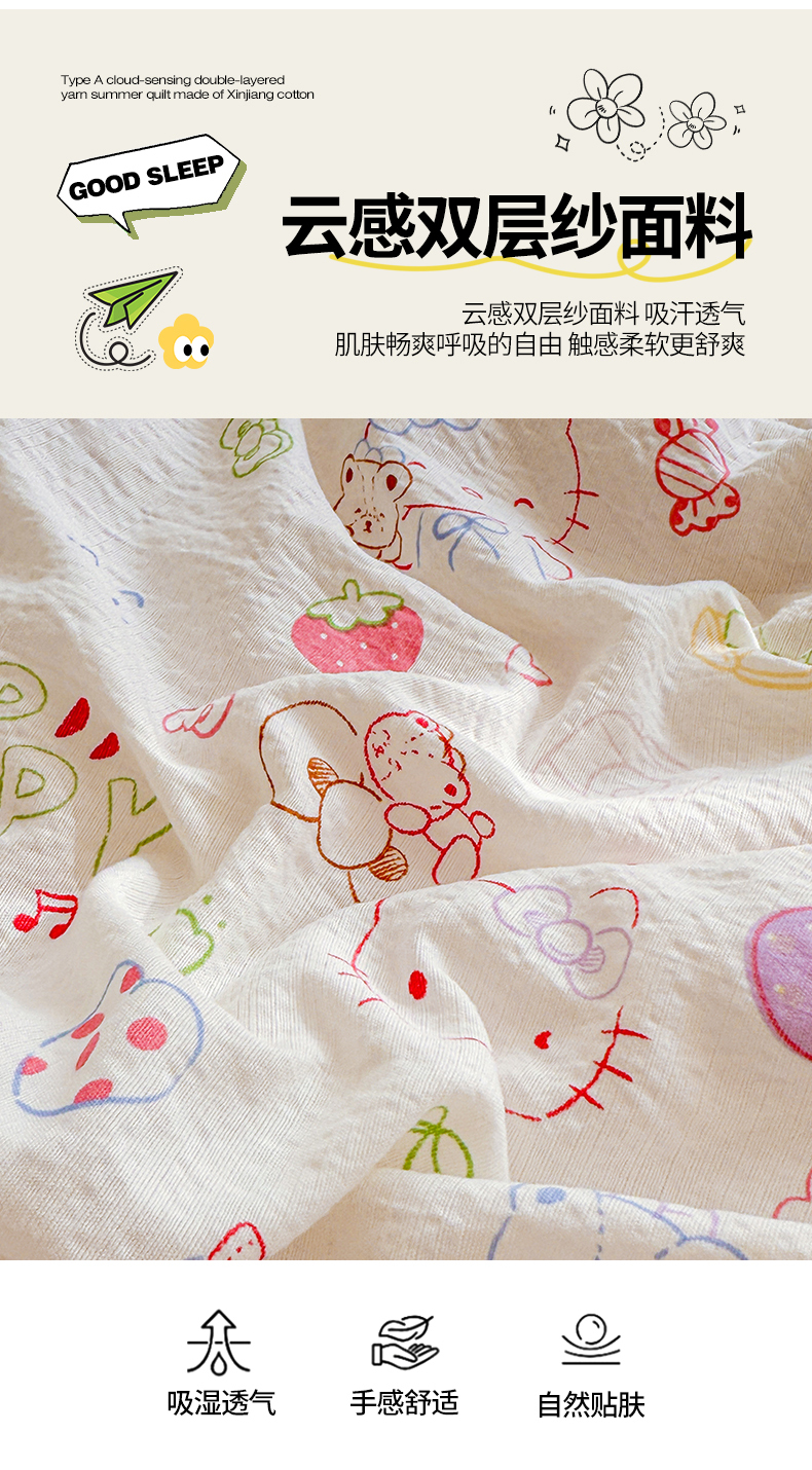 商品名称:2026新款A类新疆棉花夏凉被加宽包边水洗棉卡通印花吸湿透气棉花夏被空调被 云感萌仔