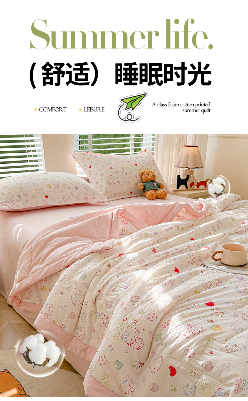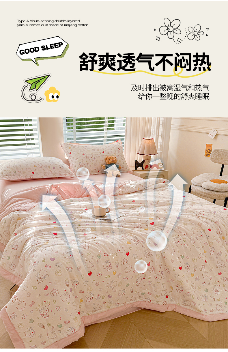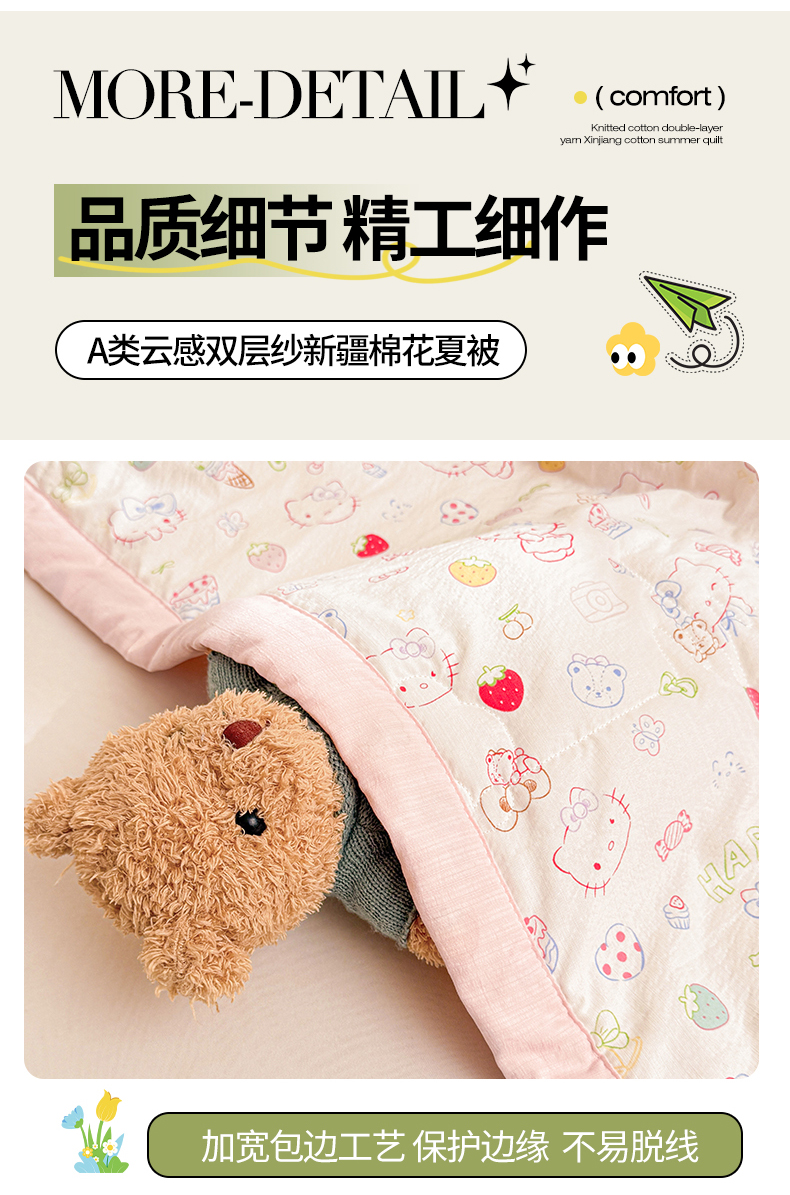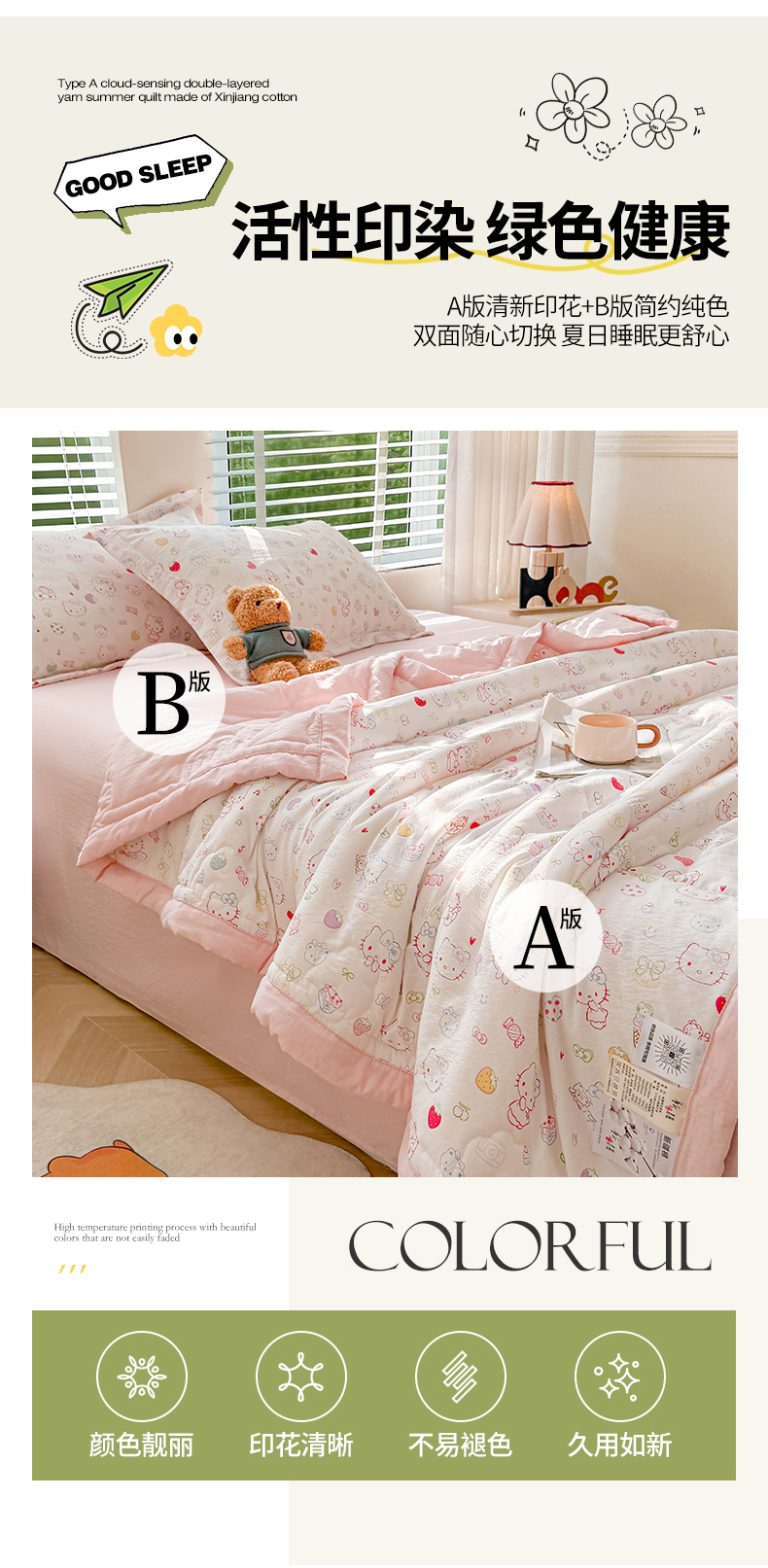 商品名称:2026新款A类新疆棉花夏凉被加宽包边水洗棉卡通印花吸湿透气棉花夏被空调被 云感萌仔