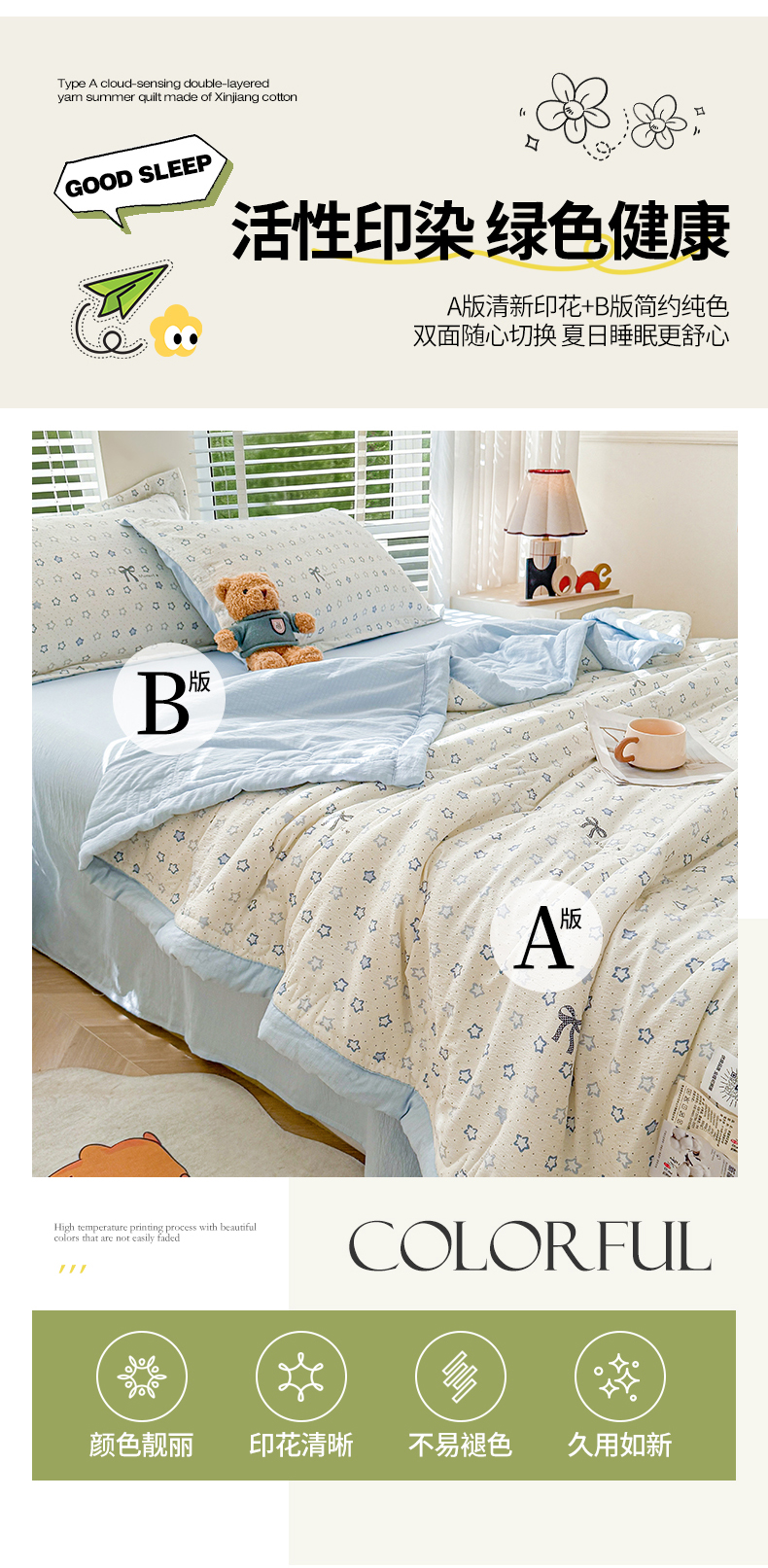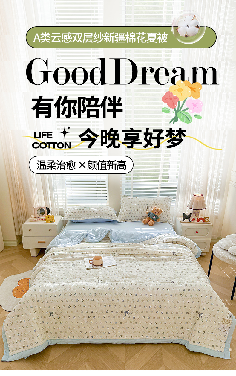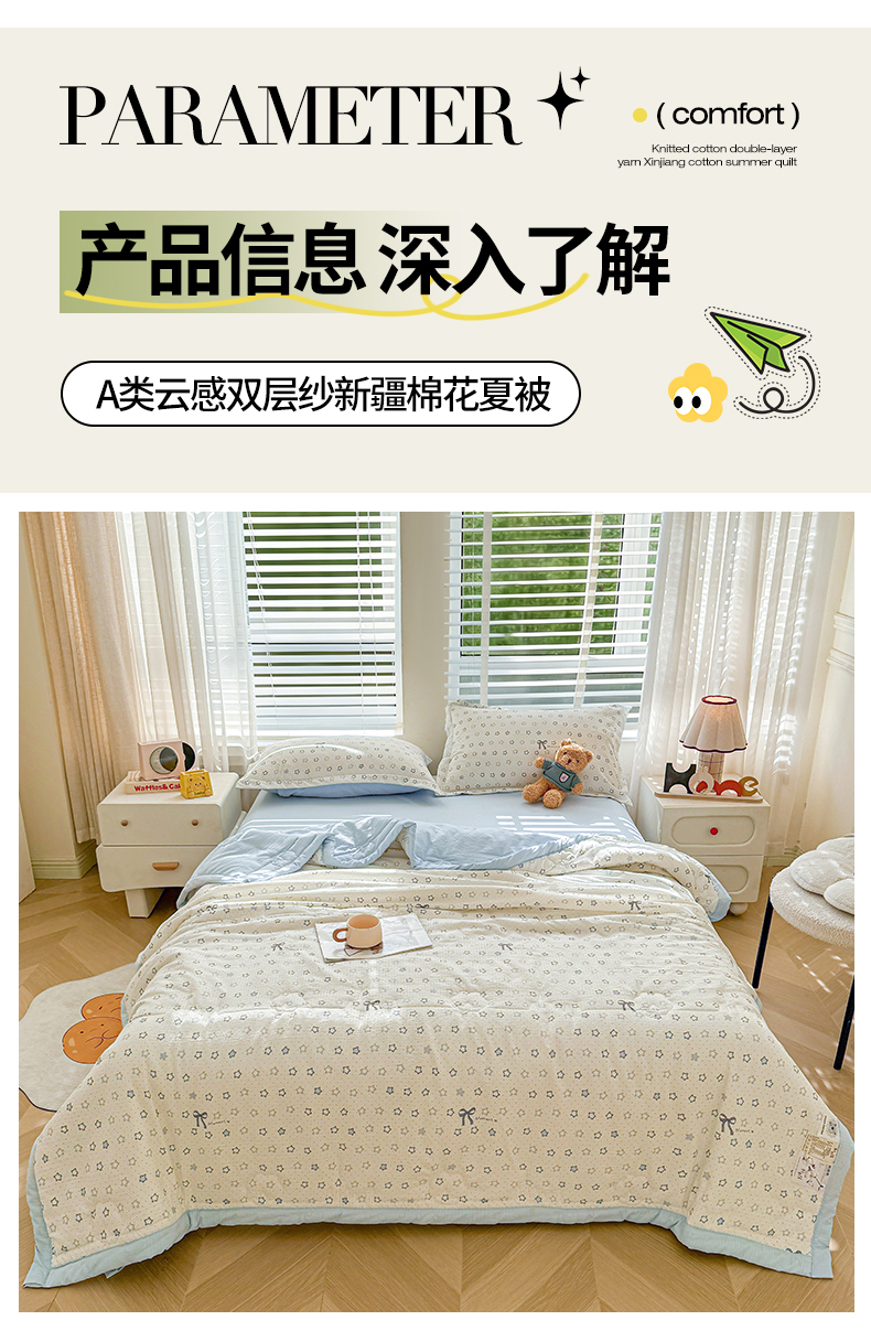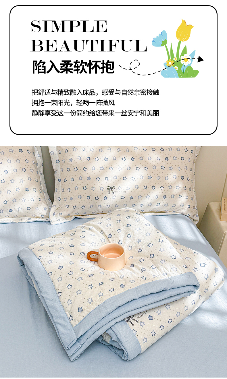 商品名称:2026新款A类新疆棉花夏凉被加宽包边水洗棉卡通印花吸湿透气棉花夏被空调被 云感星星